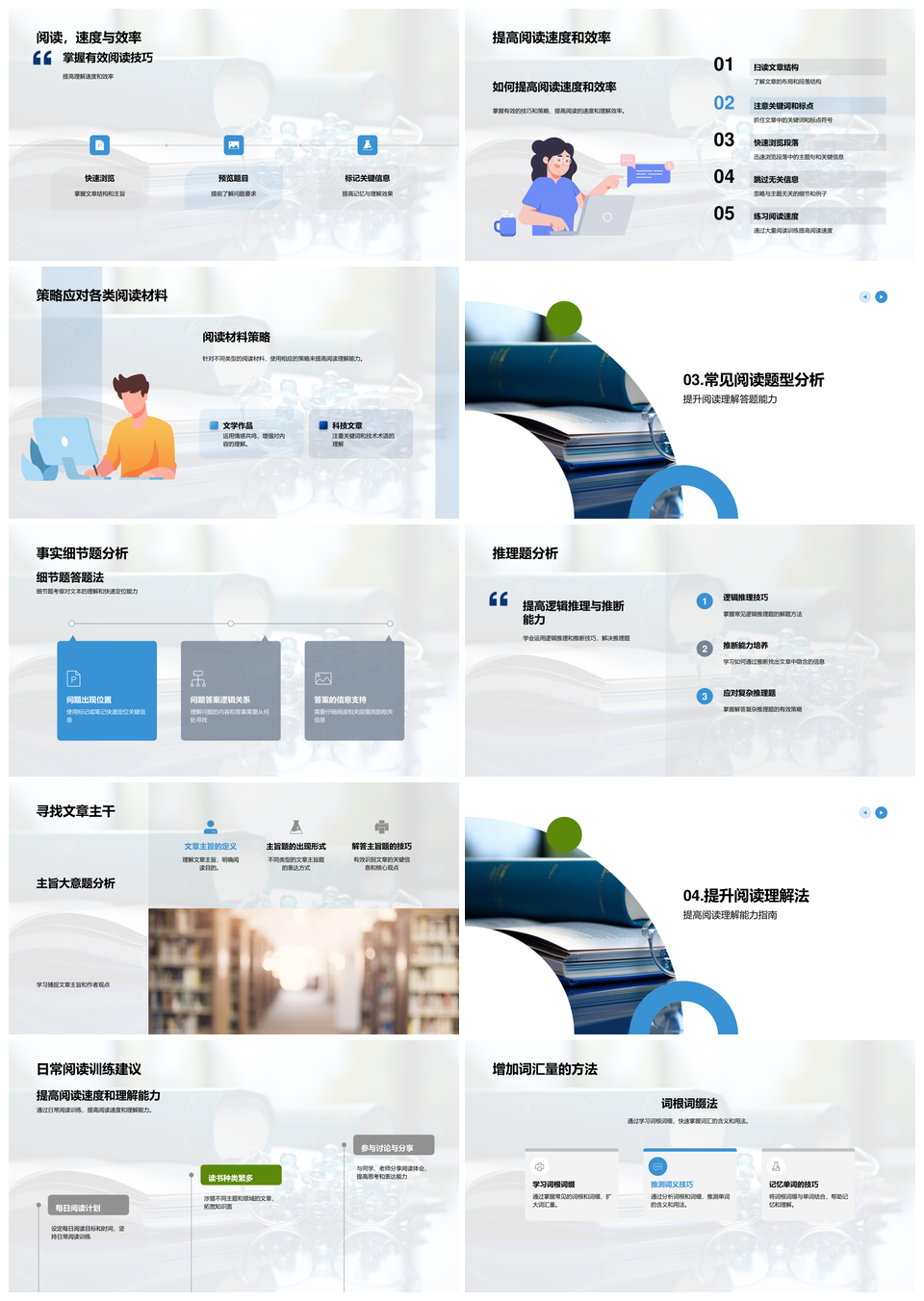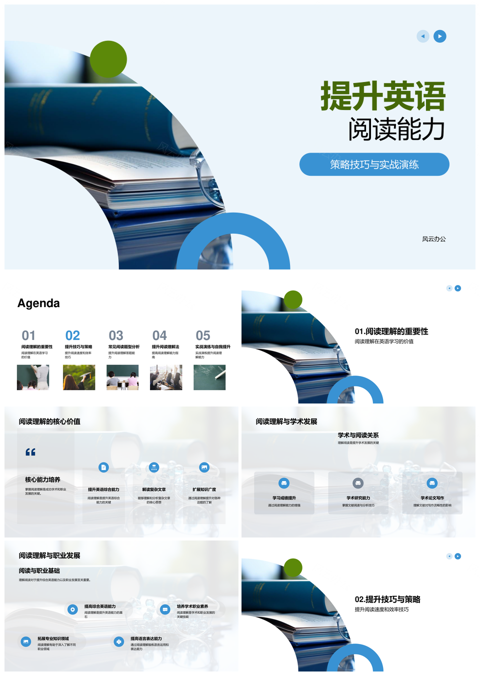 风云办公提供的英语阅读理解技巧策略助力学术职业PPT模板,下载格式为pptx,一共25页,作品中文字及图均可以修改和编辑,图片更改请在作品中右键图片并更换,文字修改请直接点击文字进行修改。