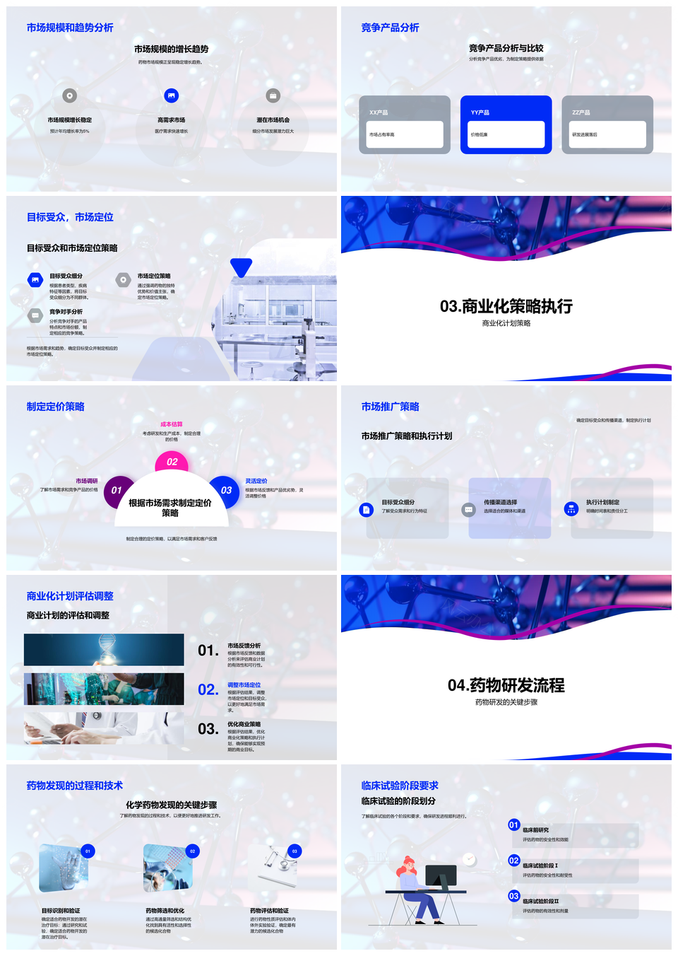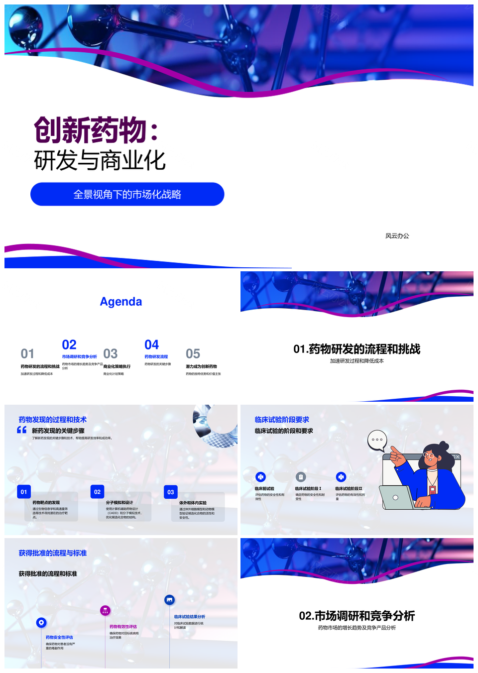 风云办公提供的生物技术创新药物研发与商业化策略PPT模板,下载格式为pptx,一共23页,作品中文字及图均可以修改和编辑,图片更改请在作品中右键图片并更换,文字修改请直接点击文字进行修改。