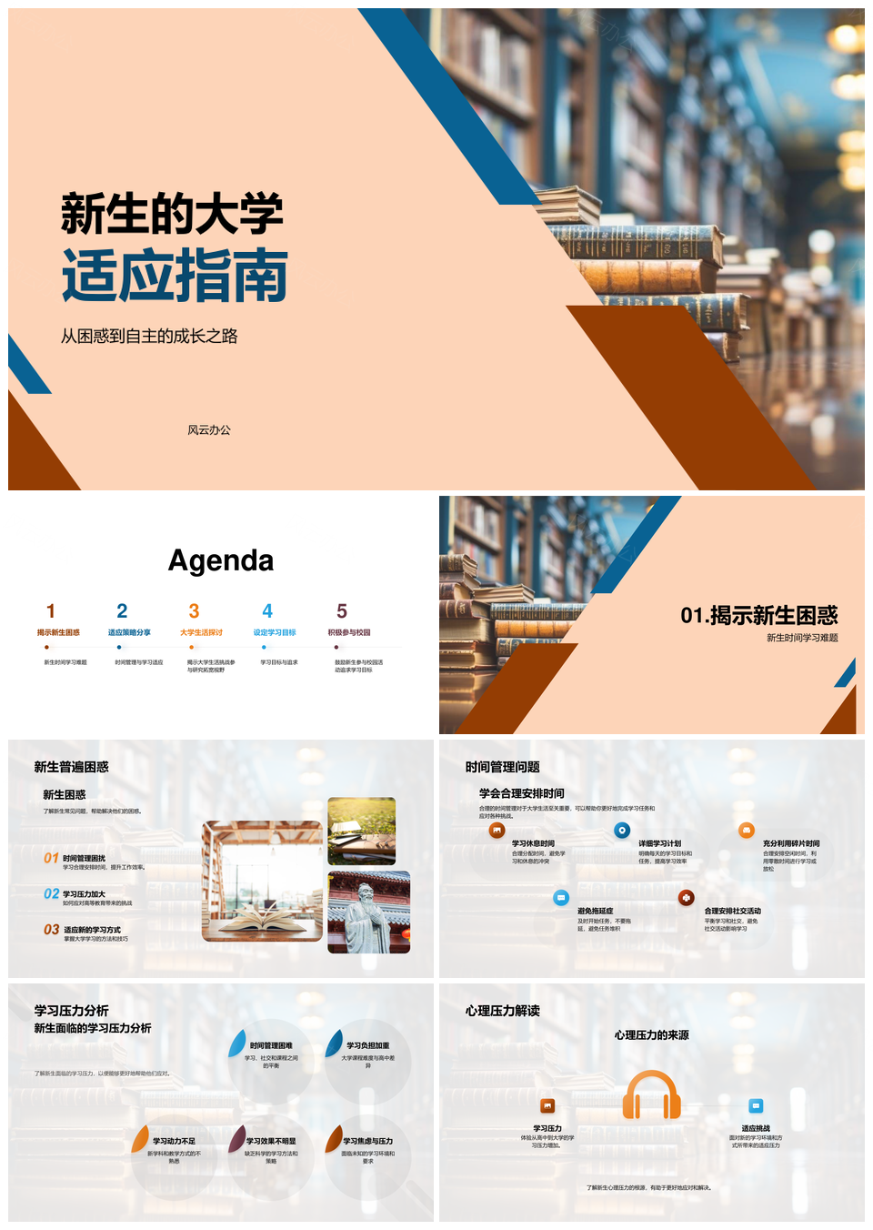 风云办公提供的大学新生适应时间学业社交压力管理PPT模板,下载格式为pptx,一共33页,作品中文字及图均可以修改和编辑,图片更改请在作品中右键图片并更换,文字修改请直接点击文字进行修改。