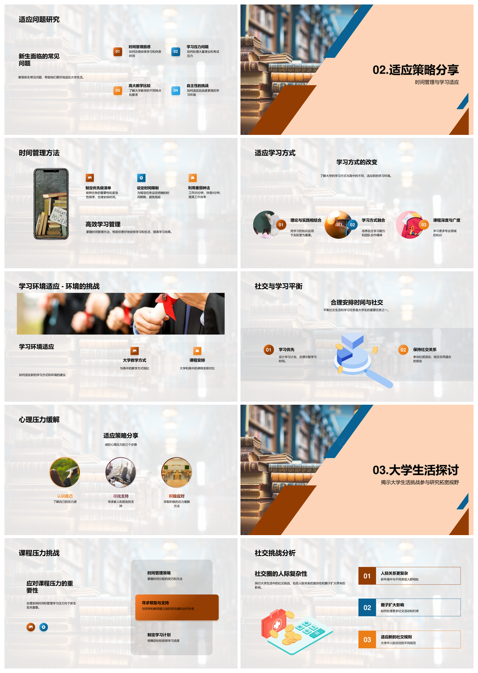 这是一张大学新生适应时间学业社交压力管理PPT模板,包含大学新生、适应、时间、学业、社交、压力、管理等主题内容,也可用作大学新生适应时间、新生适应时间学业、适应时间学业社交、时间学业社交压力、学业社交压力管理、大学新生适应、新生适应时间、适应时间学业、时间学业社交、学业社交压力、社交压力管理、大学新生、新生适应、适应时间、时间学业等PPT场景使用。