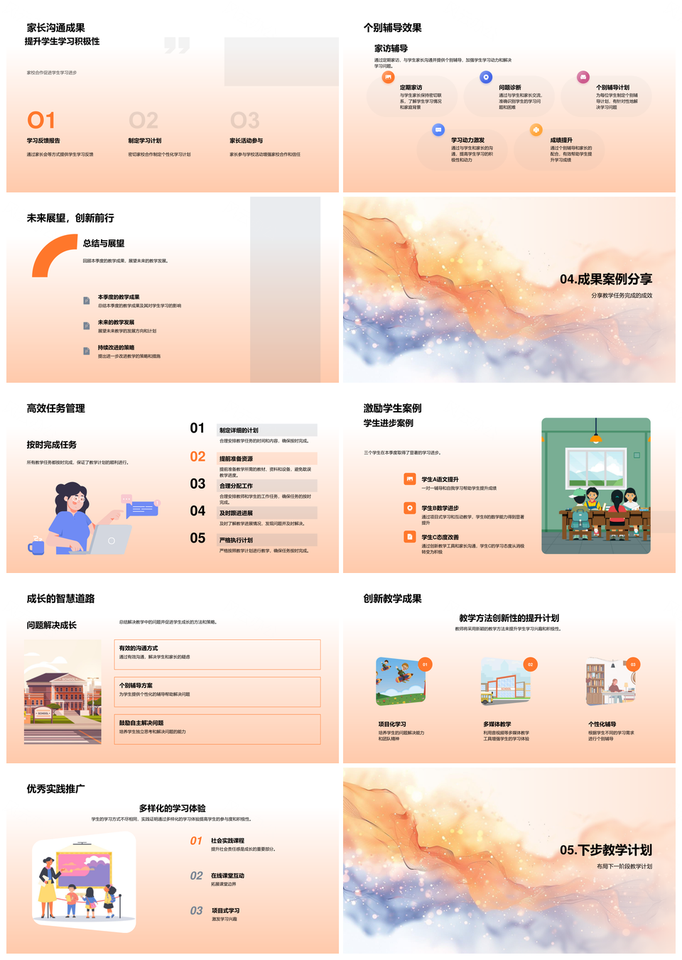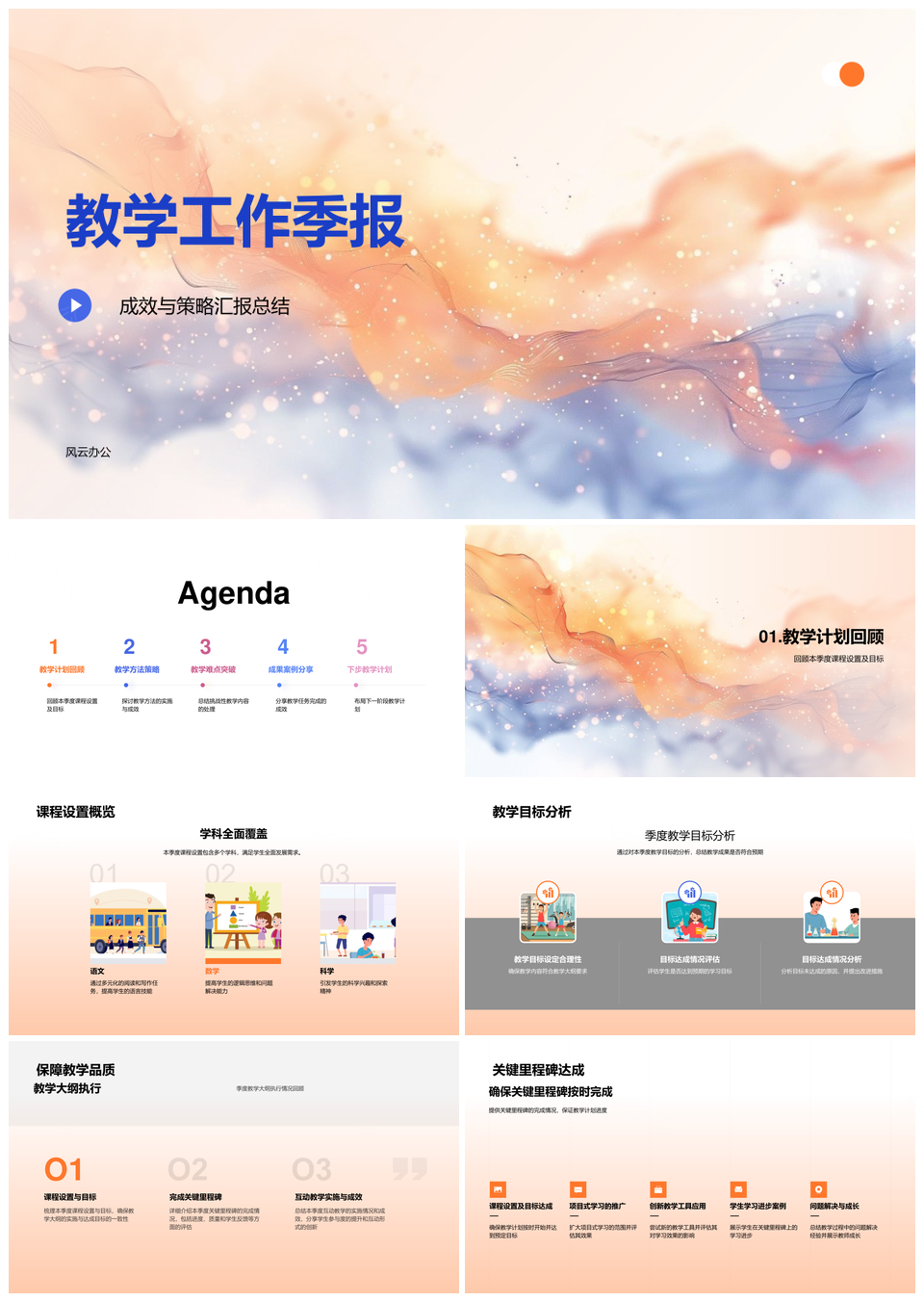 教学季报计划课程目标方法互动难点家长成果PPT模板推荐