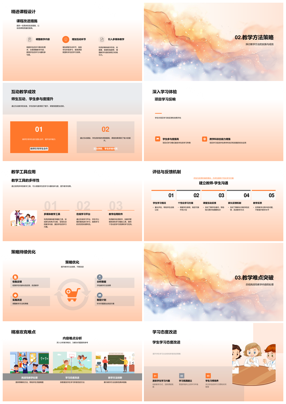 2025学期教学策略反思优化目标计划课程方法效果反馈PPT模板