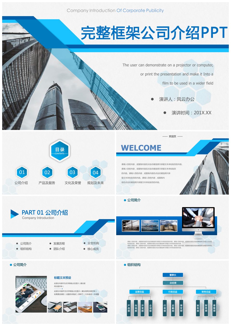 这是一张完整框架公司介绍PPT模板,包含完整框架、公司介绍等主题内容,也可用作完整、框架、公司、介绍 完整框架公司介绍、完整框架公司、框架公司介绍、完整框架、框架公司、公司介绍等PPT场景使用。 风云办公提供的完整框架公司介绍PPT模板,下载格式为pptx,一共33页,作品中文字及图均可以修改和编辑,图片更改请在作品中右键图片并更换,文字修改请直接点击文字进行修改。