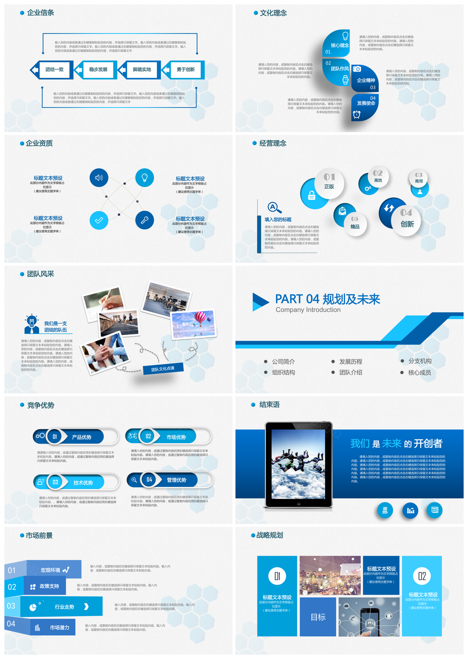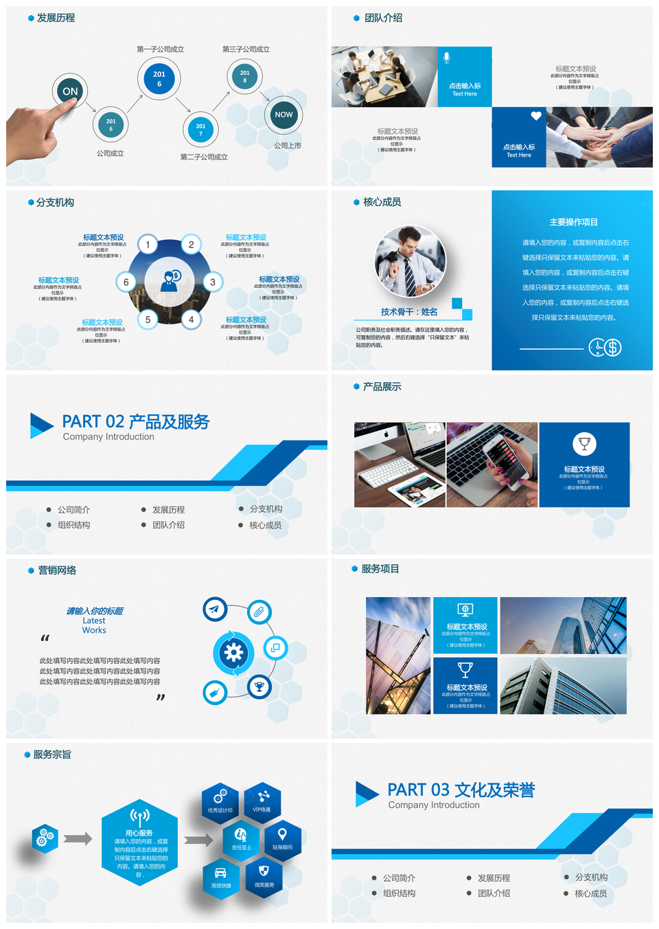 合作蓝色公司介绍产品介绍创业商业融资PPT模板