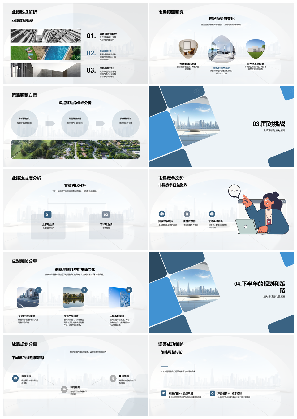 这是一张2025绩效透析策略布局全年回顾下半年规划市场趋势竞争摩天大楼PPT模板,包含2025、绩效、透析、策略、布局、全年、回顾、下半年、规划、市场、趋势、竞争、摩天大楼等主题内容,也可用作2025绩效透析策略、绩效透析策略布局、透析策略布局全年回顾、策略布局全年回顾下半年、布局全年回顾下半年规划、全年回顾下半年规划市场趋势、下半年规划市场趋势竞争、规划市场趋势竞争摩天大楼、绩效透析策略布局、透析策略布局全年、策略布局全年回顾、全年回顾下半年规划、规划市场趋势竞争、市场趋势竞争摩天大楼、竞争摩天大楼等PPT场景使用。 风云办公提供的2025绩效透析策略布局全年回顾下半年规划市场趋势竞争摩天大楼PPT模板,下载格式为pptx,一共23页,作品中文字及图均可以修改和编辑,图片更改请在作品中右键图片并更换,文字修改请直接点击文字进行修改。