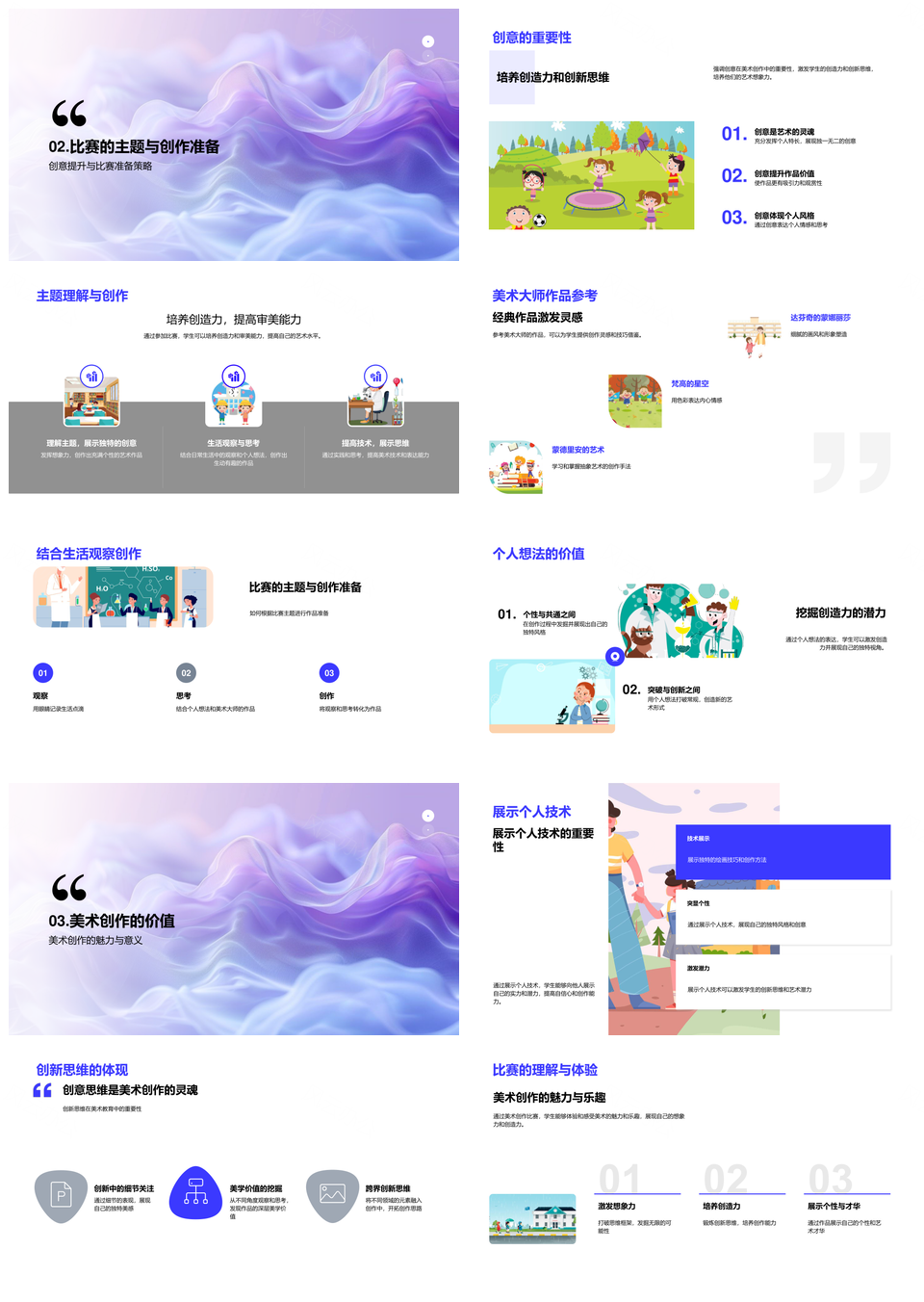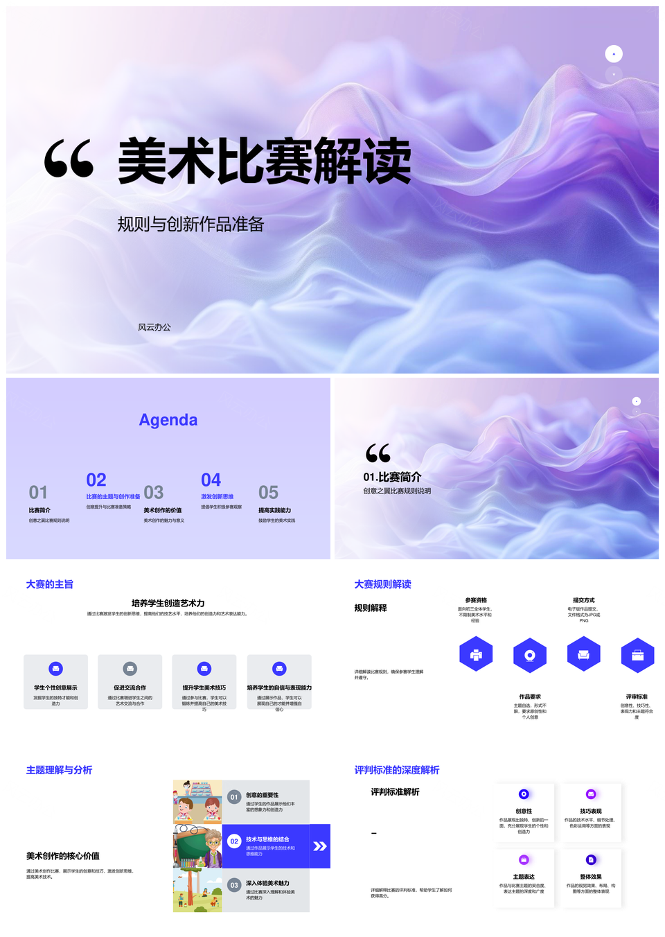美术比赛创意之翼主旨规则评判大师参考个人价值PPT模板推荐