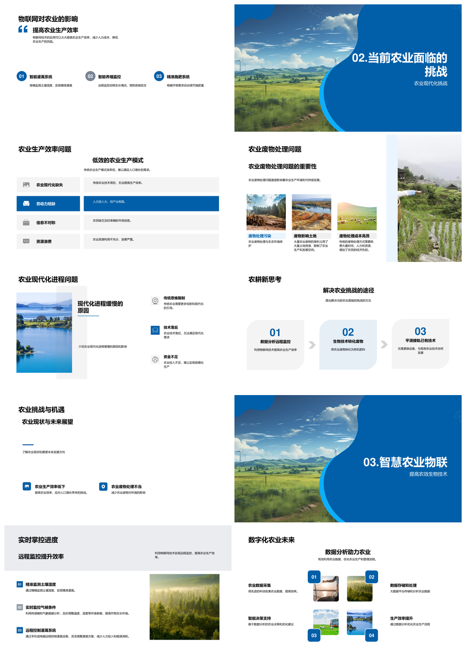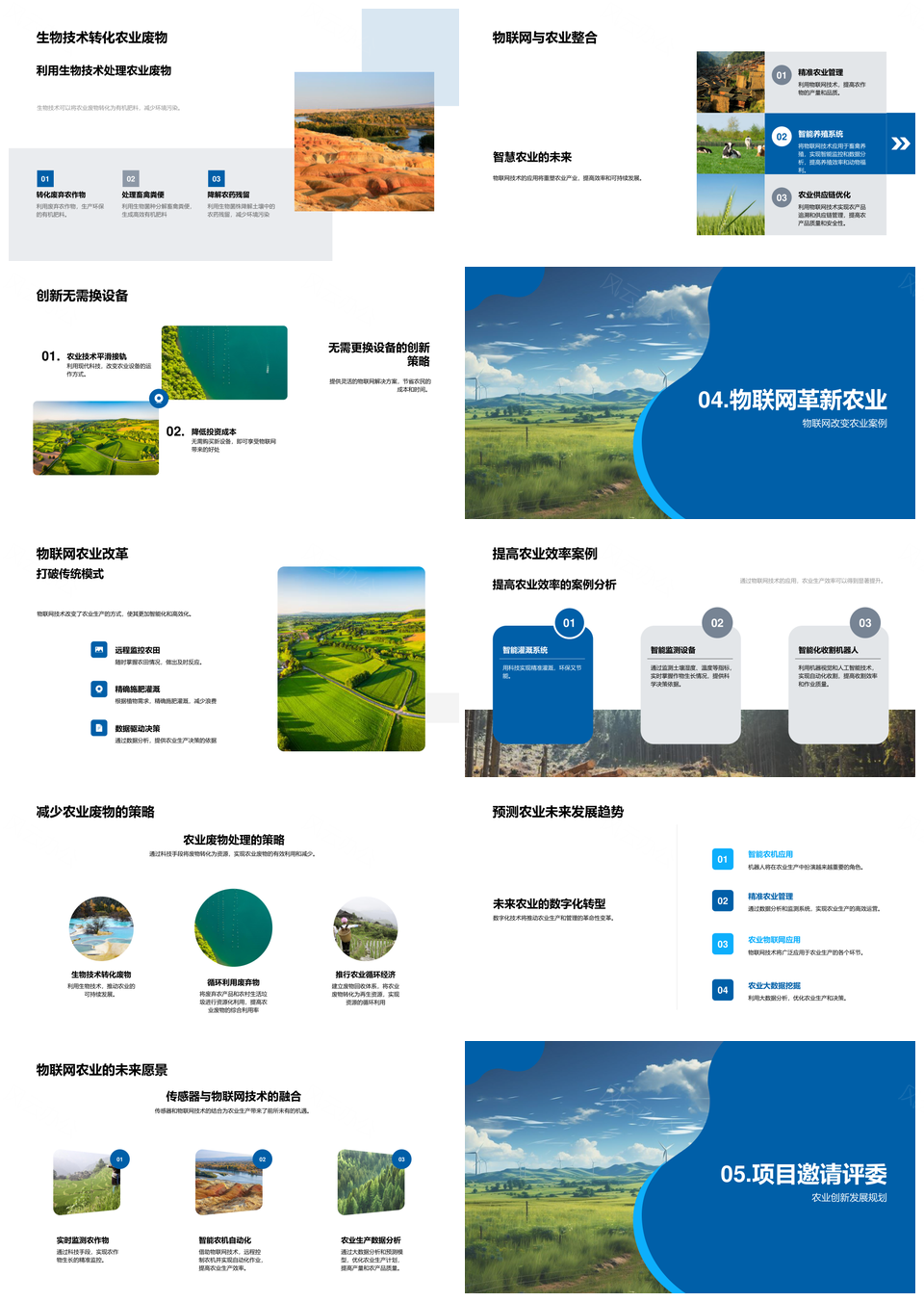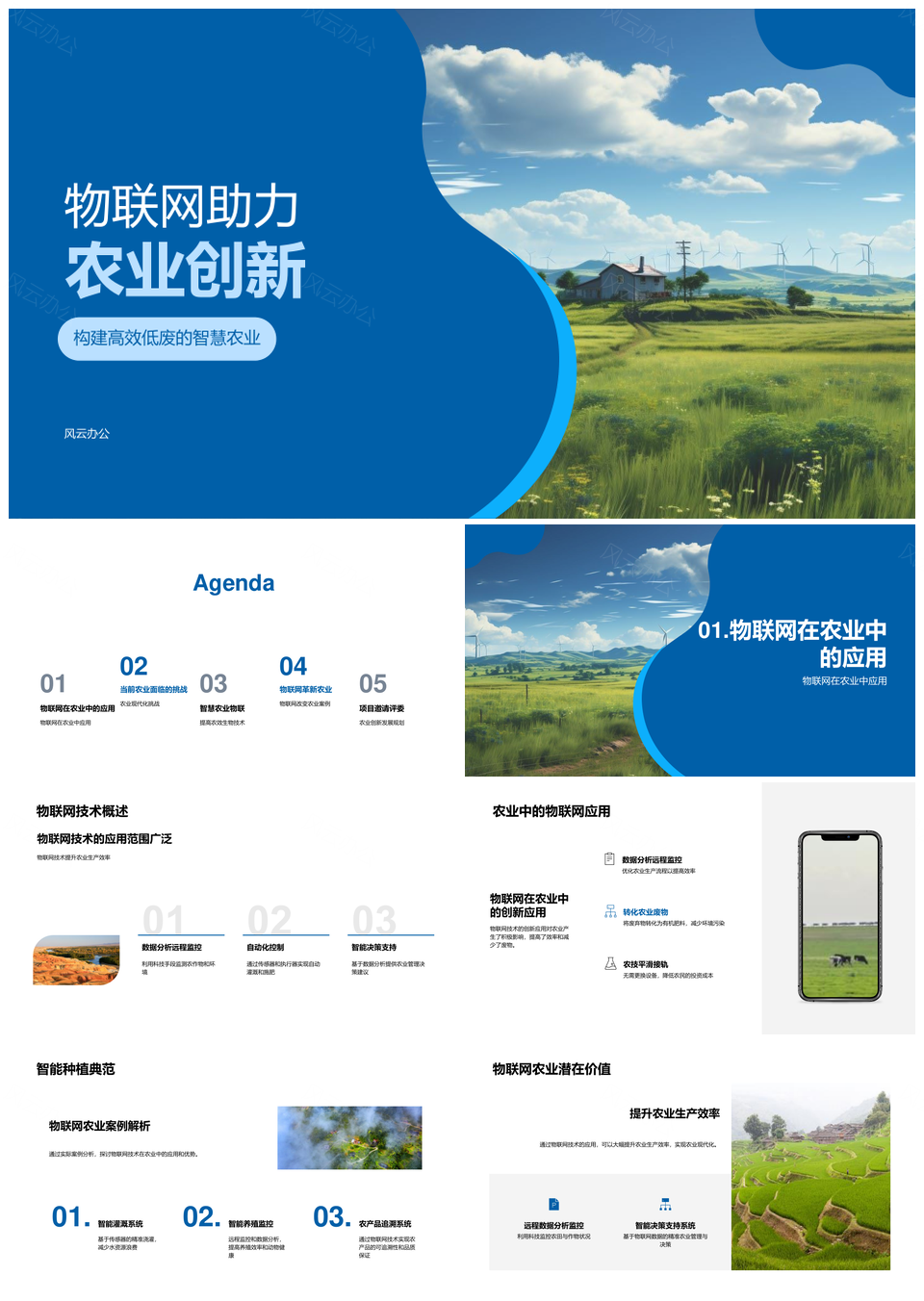 风云办公提供的物联网智慧农业创新增效处理废物PPT模板,下载格式为pptx,一共33页,作品中文字及图均可以修改和编辑,图片更改请在作品中右键图片并更换,文字修改请直接点击文字进行修改。