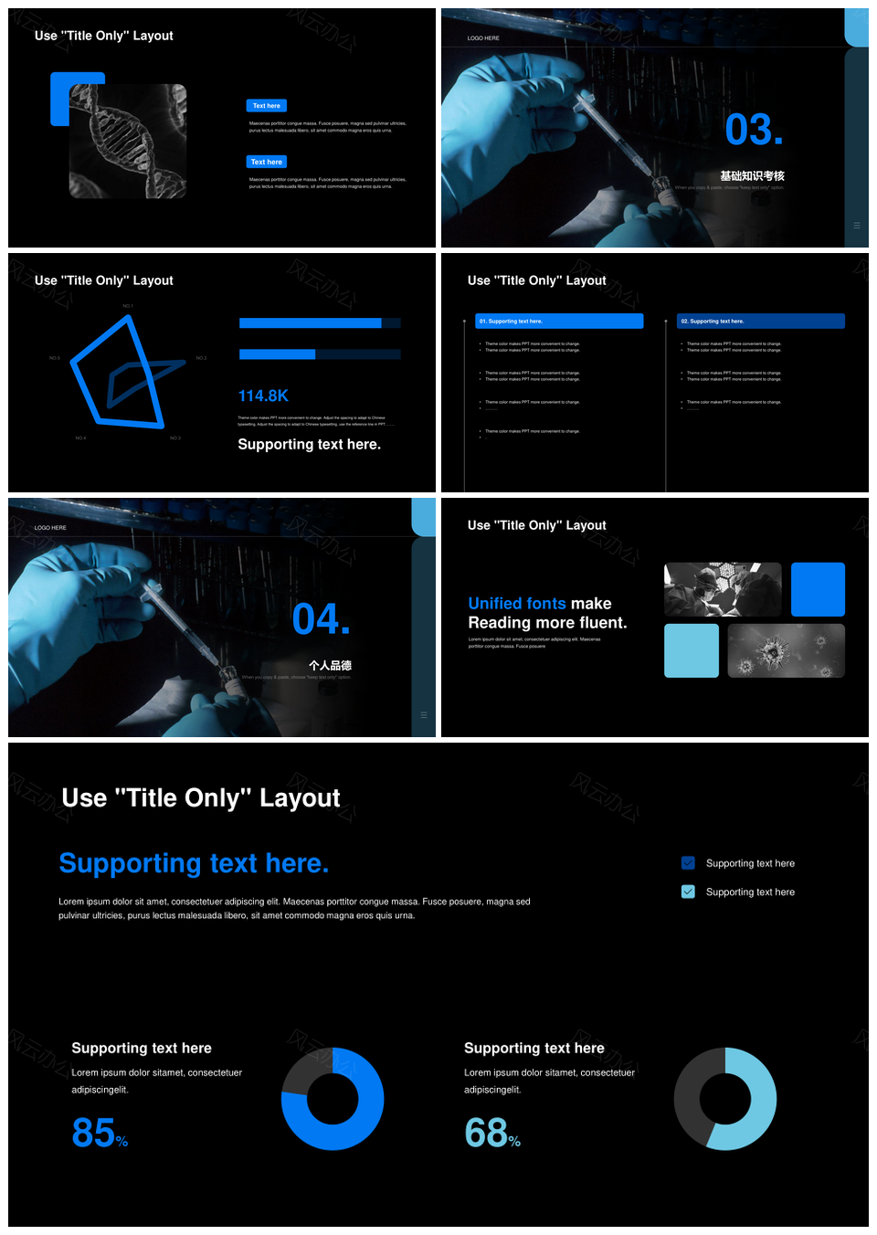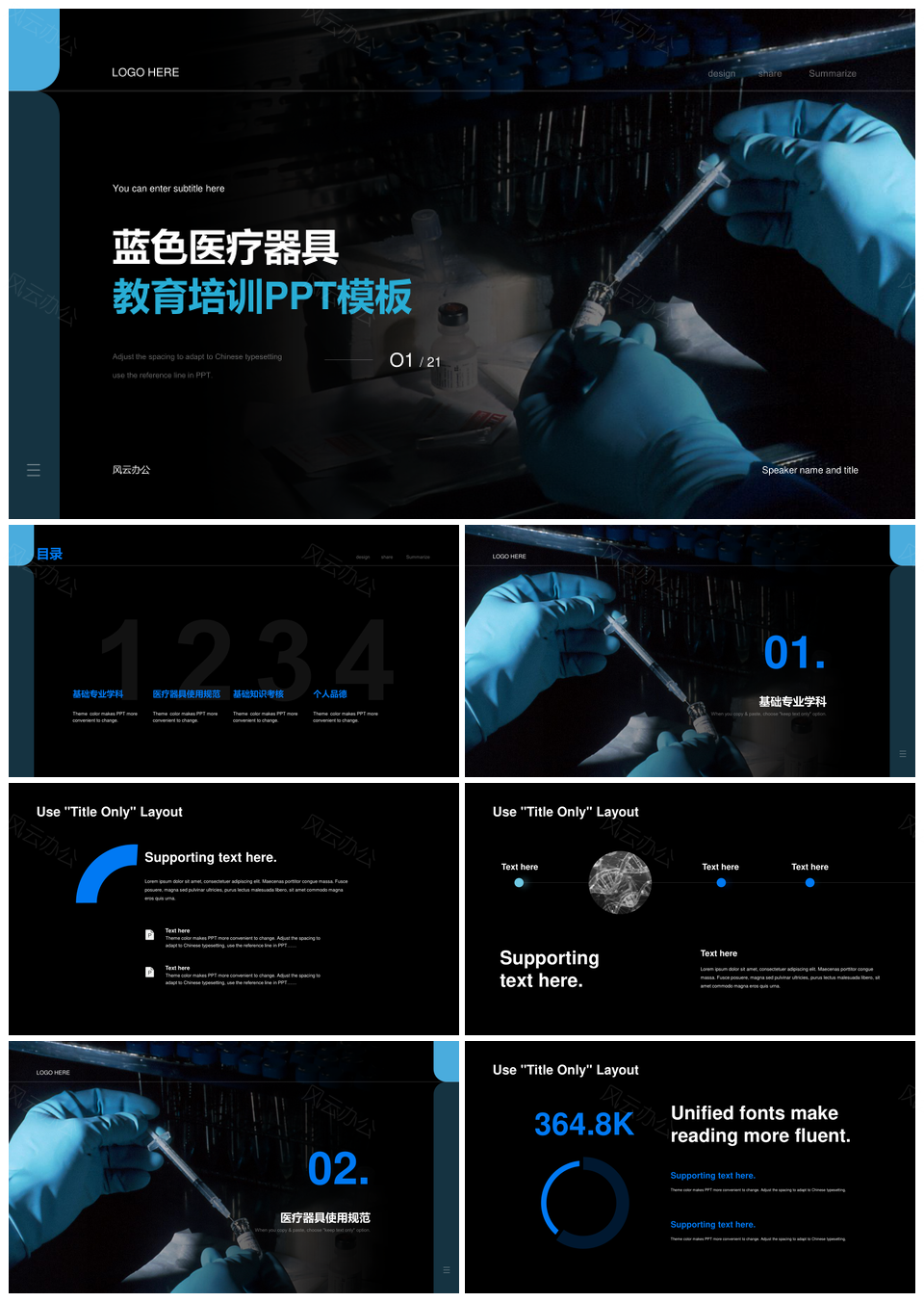 风云办公提供的蓝色医疗技术医学器具病毒教育培训PPT模板,下载格式为pptx,一共15页,作品中文字及图均可以修改和编辑,图片更改请在作品中右键图片并更换,文字修改请直接点击文字进行修改。