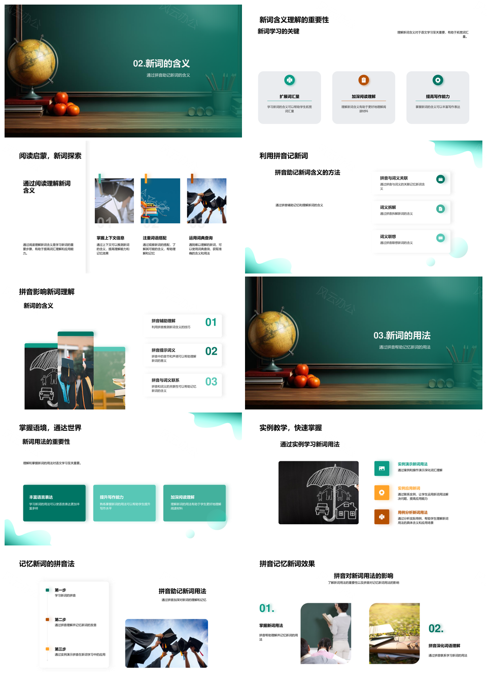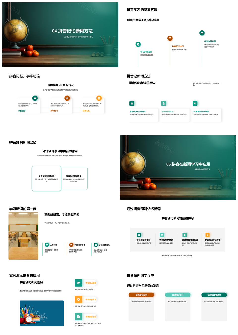 这是一张拼音助力新词发音拼写记忆教学课件黑板PPT模板,包含拼音助力、新词发音、拼写记忆、教学课件、黑板等主题内容,也可用作拼音助力新词发音拼写记忆教学、拼音助力新词发音拼写、助力新词发音拼写记忆、新词发音拼写记忆教学、拼音助力发音拼写记忆、拼写记忆教学课件黑板、拼音助力新词发音记忆、拼音助力新词发音教学、拼音助力拼写记忆教学、发音拼写记忆教学课件、助力新词发音拼写教学、新词拼写记忆教学课件、拼音助力教学课件黑板、新词发音拼写教学课件、发音拼写教学课件黑板等PPT场景使用。 风云办公提供的拼音助力新词发音拼写记忆教学课件黑板PPT模板,下载格式为pptx,一共28页,作品中文字及图均可以修改和编辑,图片更改请在作品中右键图片并更换,文字修改请直接点击文字进行修改。