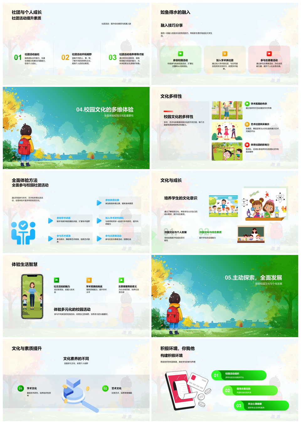 2025校园文化学术艺术体育社团与个性大学生活PPT模板推荐
