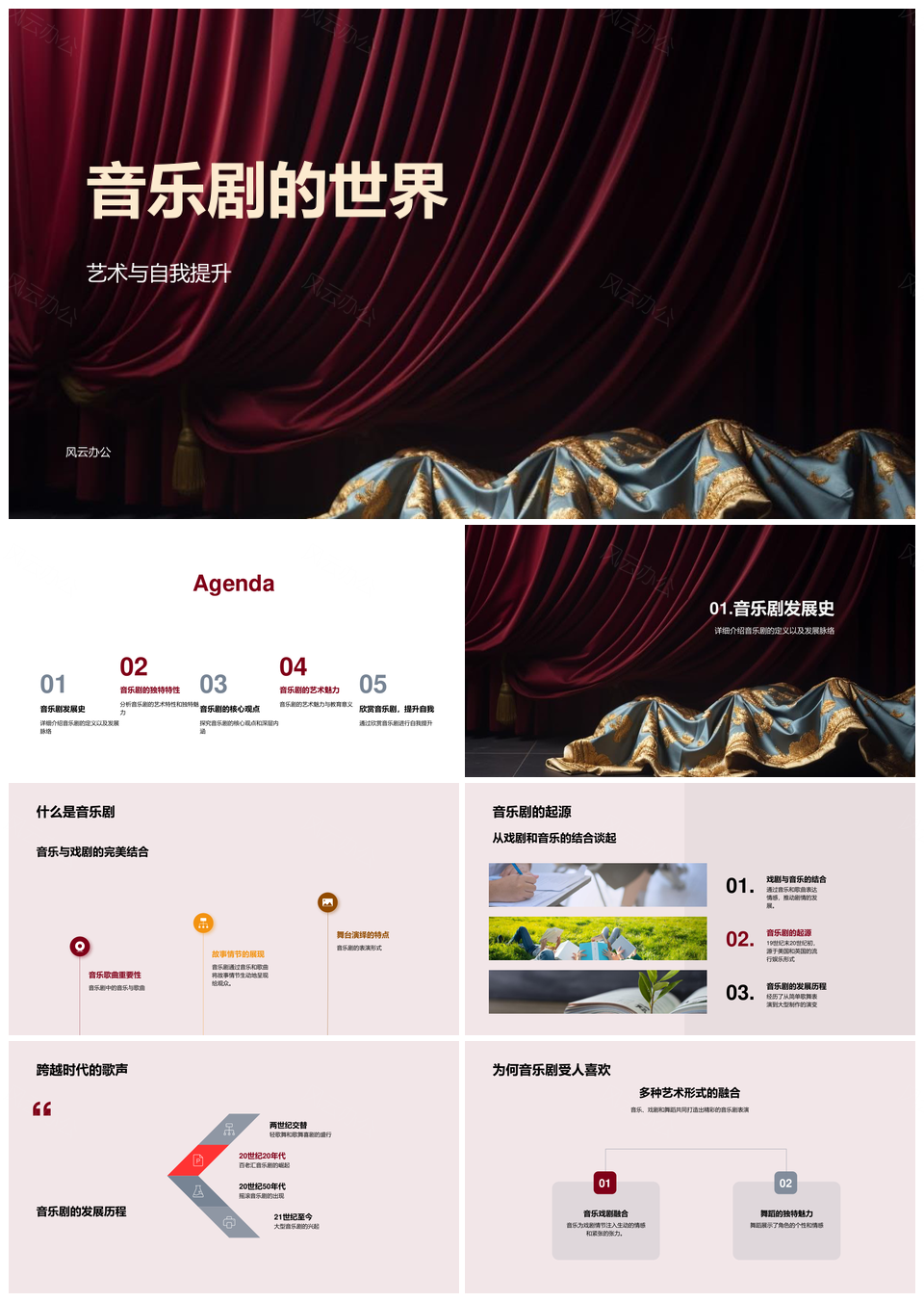 音乐剧艺术起源名作与审美提升PPT模板推荐