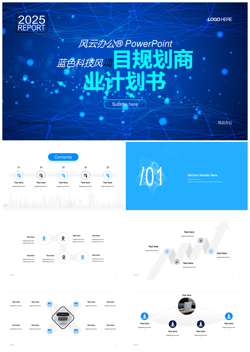 2025蓝色炫彩科技时尚商务报告总结目标PPT模板