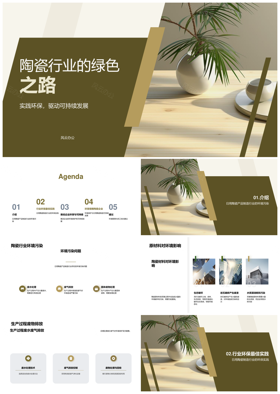 风云办公提供的陶瓷业环保生产与可持续开采发展PPT模板,下载格式为pptx,一共26页,作品中文字及图均可以修改和编辑,图片更改请在作品中右键图片并更换,文字修改请直接点击文字进行修改。