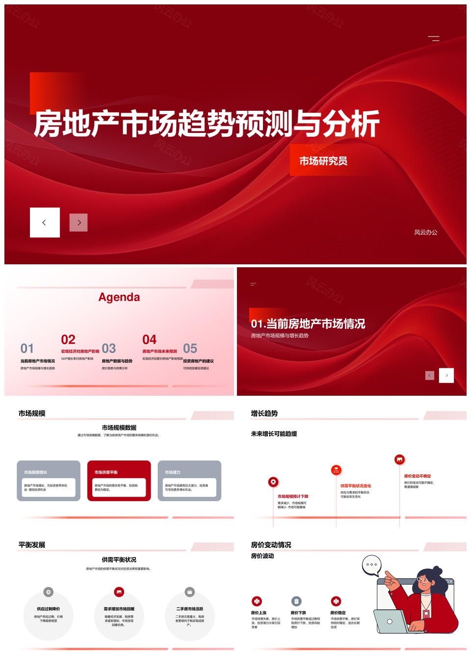房地产市场增长趋势供需房价预测分析PPT模板推荐