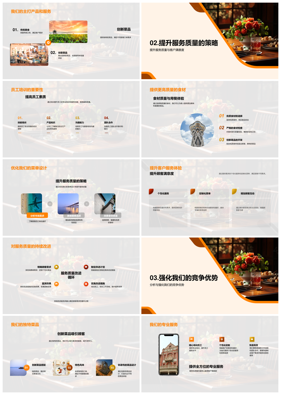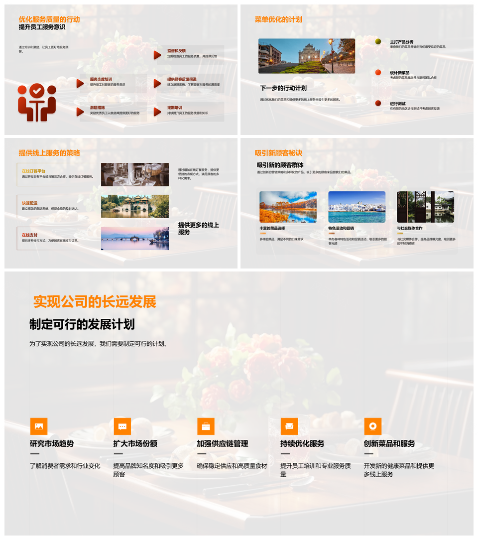 风云办公提供的餐饮业优化品质服务菜单强化竞争优势PPT模板,下载格式为pptx,一共33页,作品中文字及图均可以修改和编辑,图片更改请在作品中右键图片并更换,文字修改请直接点击文字进行修改。