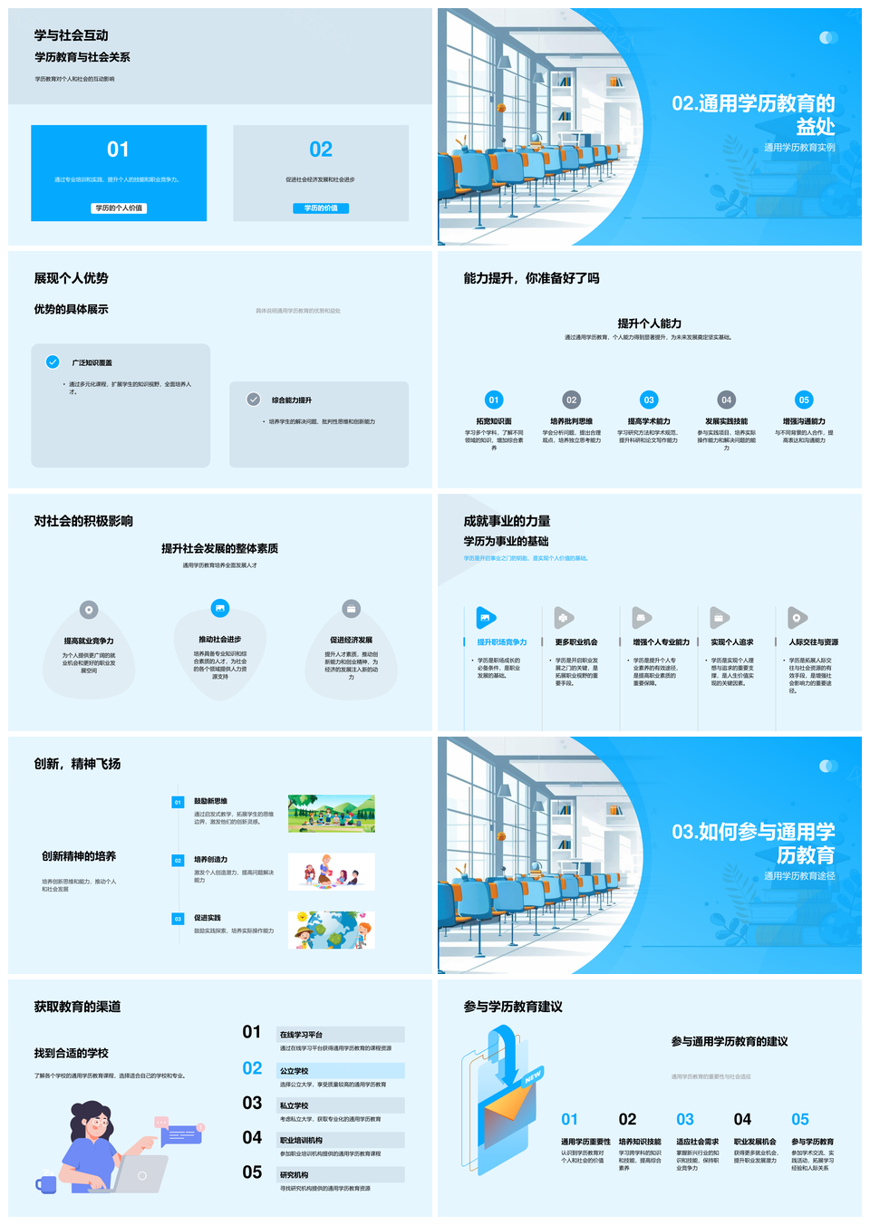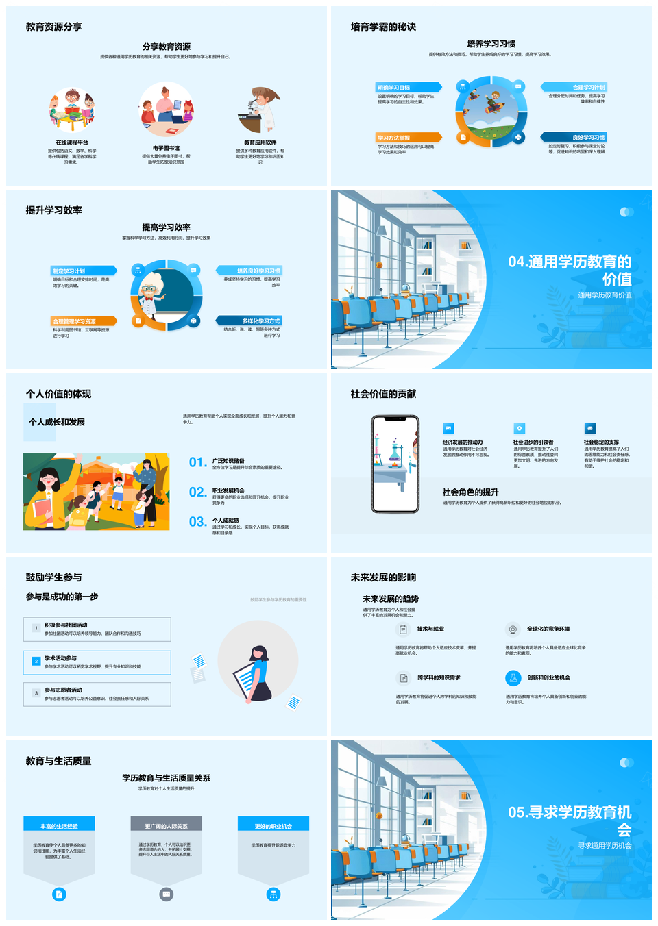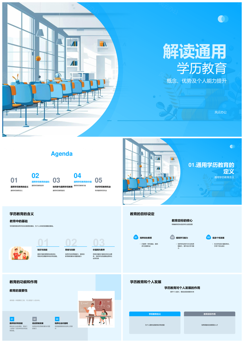 风云办公提供的通用学历教育促进个人发展与社会进步PPT模板,下载格式为pptx,一共33页,作品中文字及图均可以修改和编辑,图片更改请在作品中右键图片并更换,文字修改请直接点击文字进行修改。