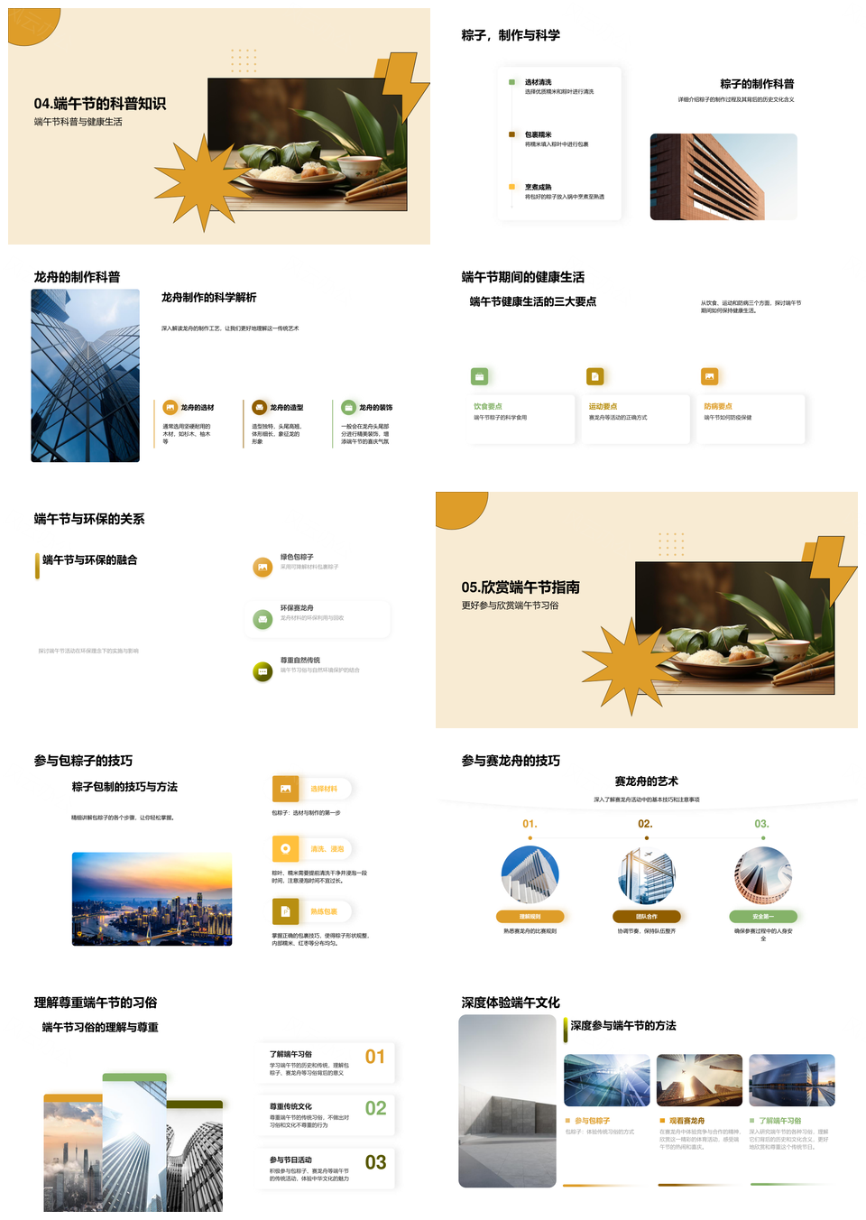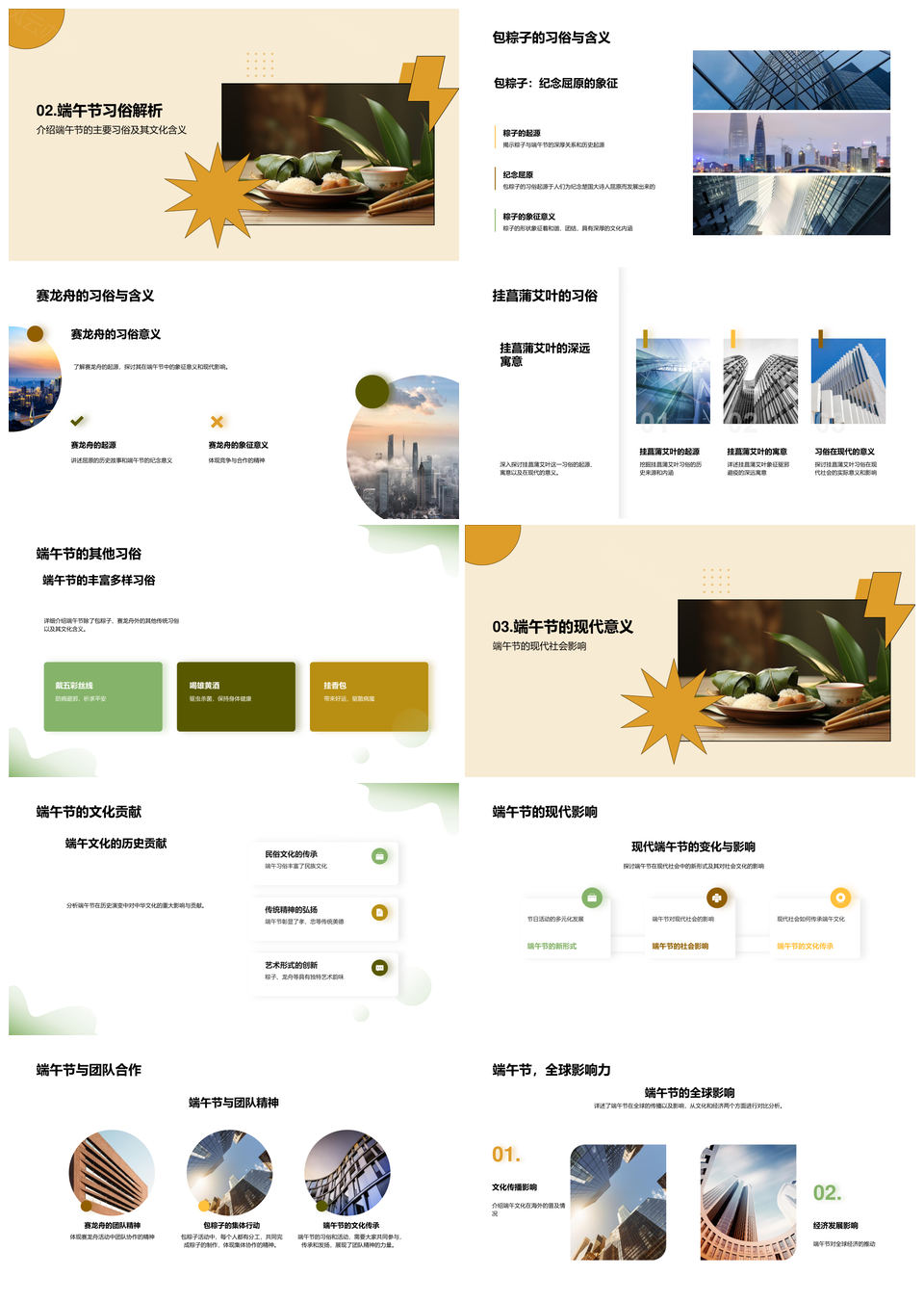 这是一张端午节历史文化现代应用起源屈原粽龙舟菖蒲艾叶PPT模板,包含端午节、历史文化、现代应用、起源、屈原、粽、龙舟、菖蒲、艾叶等主题内容,也可用作端午节历史文化现代应用起源、端午节历史文化起源屈原、历史文化现代应用起源、端午节龙舟菖蒲艾叶、屈原粽龙舟菖蒲、端午现代应用屈原龙舟、菖蒲艾叶历史文化屈原、端午节起源屈原粽、历史文化起源龙舟、现代应用菖蒲艾叶、屈原粽艾叶起源、端午龙舟菖蒲艾叶、起源龙舟菖蒲艾叶、历史文化现代应用、端午起源屈原等PPT场景使用。 风云办公提供的端午节历史文化现代应用起源屈原粽龙舟菖蒲艾叶PPT模板,下载格式为pptx,一共28页,作品中文字及图均可以修改和编辑,图片更改请在作品中右键图片并更换,文字修改请直接点击文字进行修改。