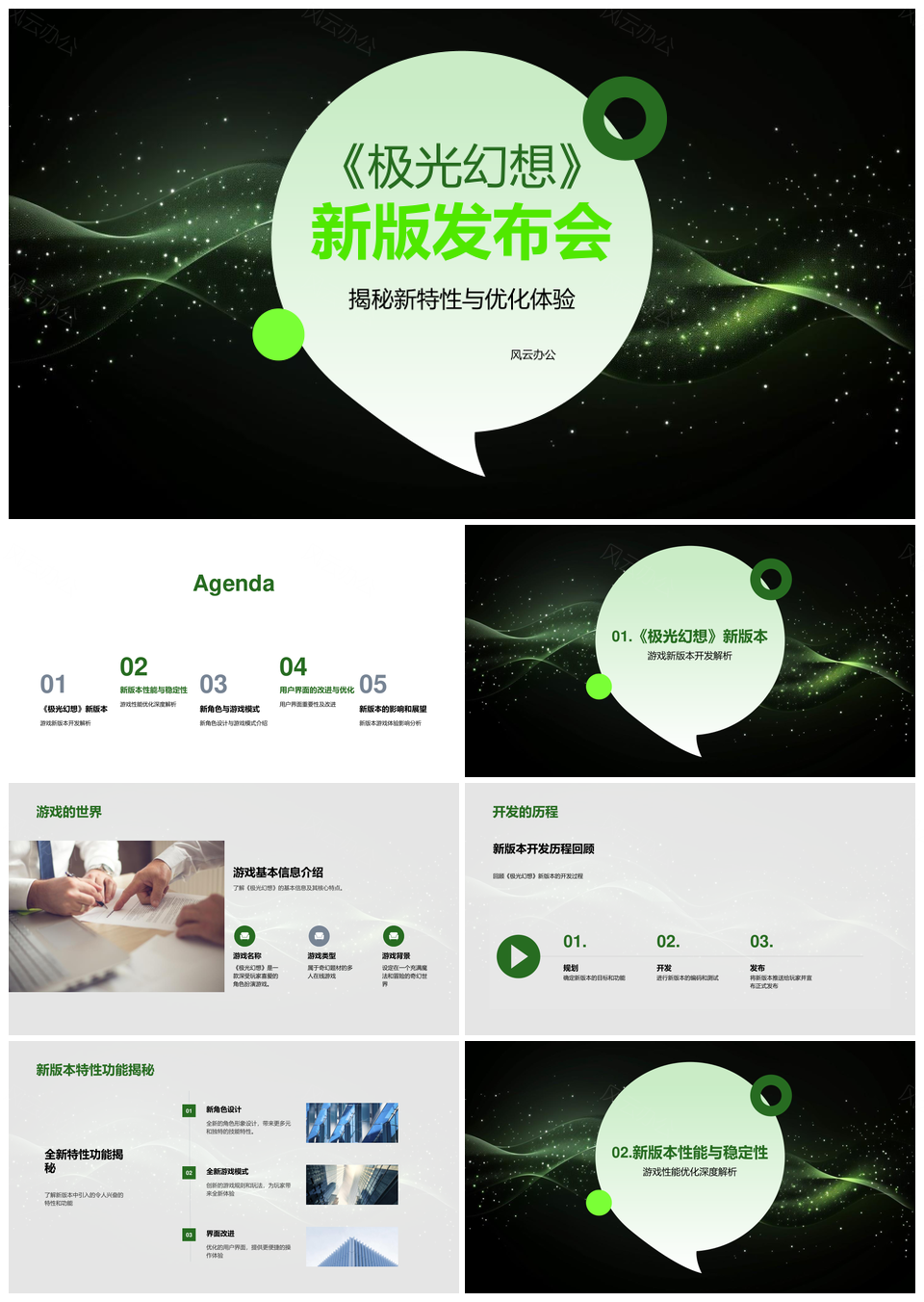 极光幻想新版发布会新特性体验优化新角色PPT模板推荐