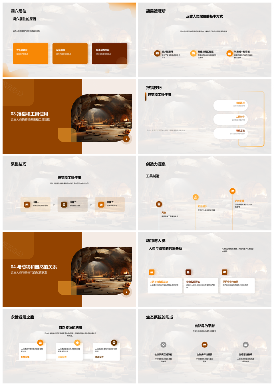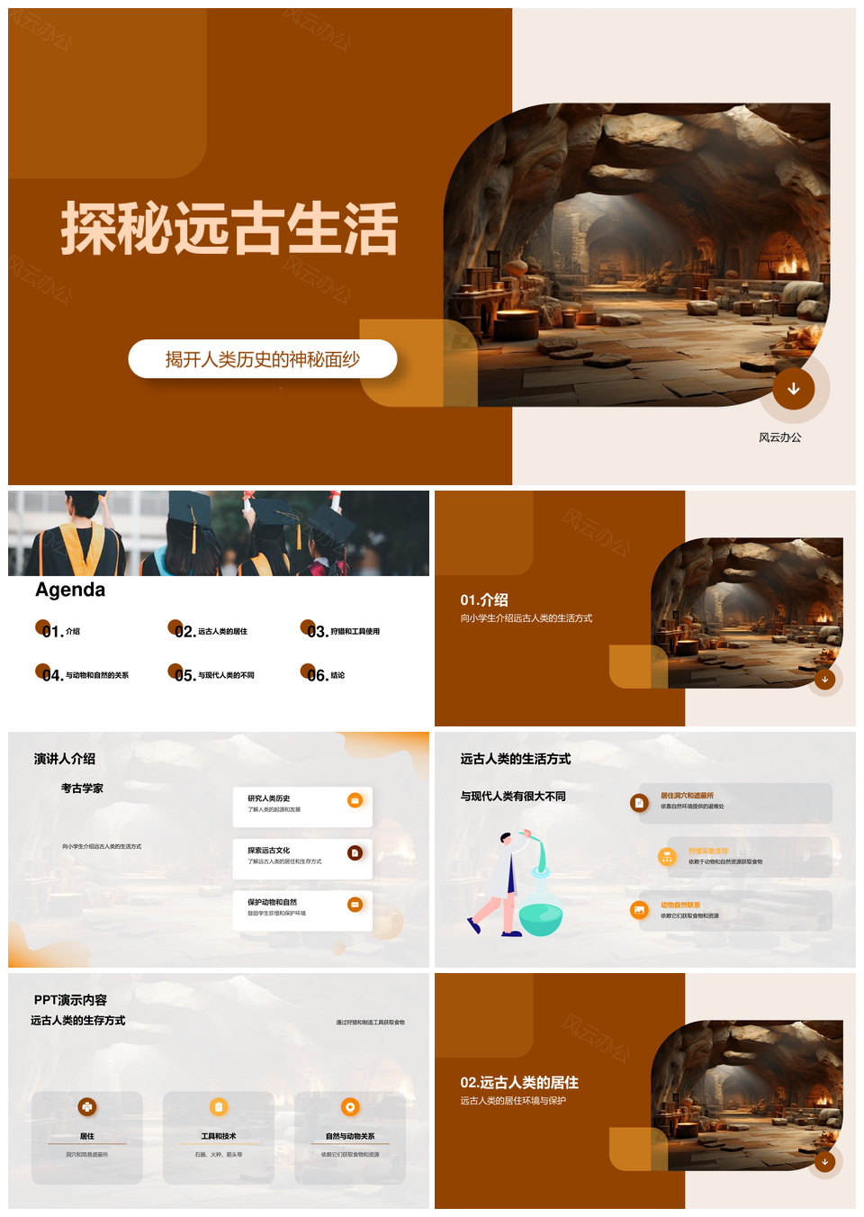 风云办公提供的小学探索远古人类生活狩猎工具考古PPT模板,下载格式为pptx,一共26页,作品中文字及图均可以修改和编辑,图片更改请在作品中右键图片并更换,文字修改请直接点击文字进行修改。