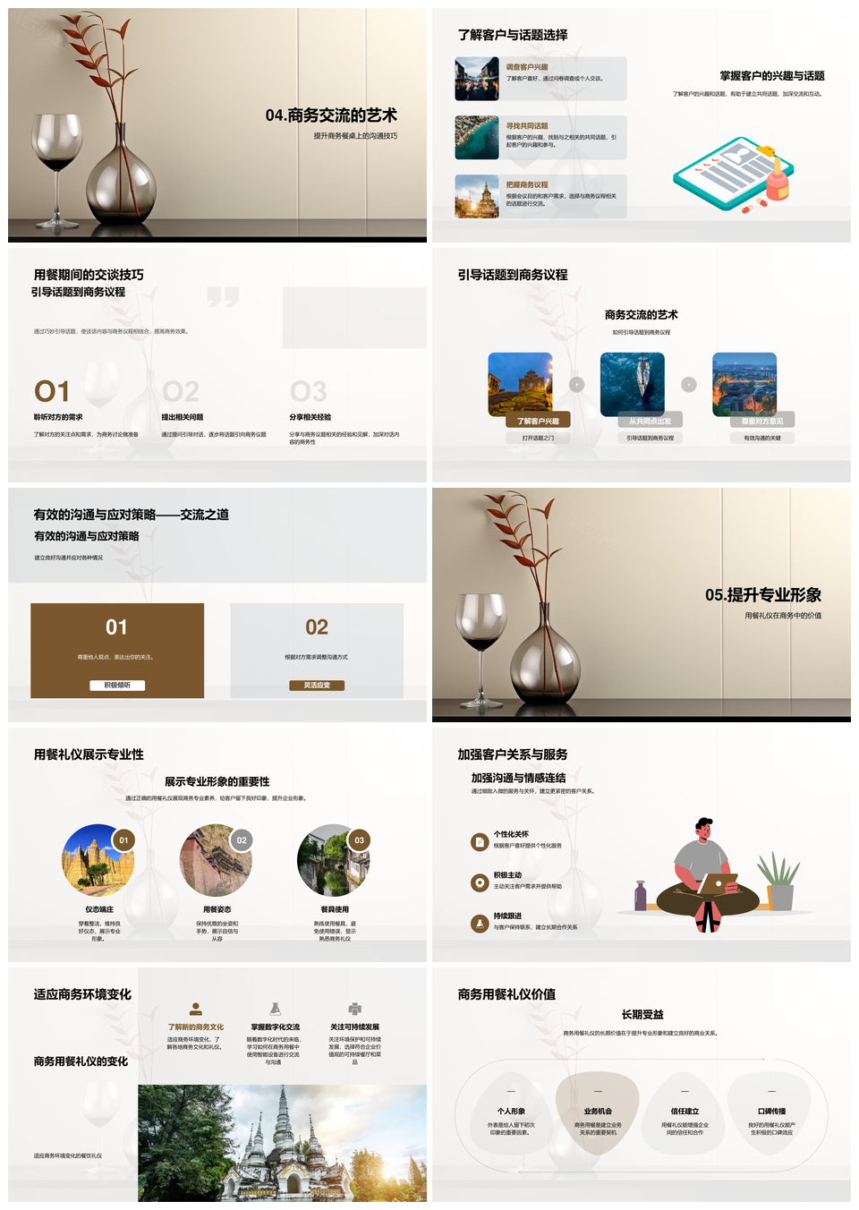 这是一张商务宴请礼仪选品雅艺餐饮艺术PPT模板,包含商务宴请、礼仪、选品、雅艺、餐饮、艺术等主题内容,也可用作商务宴请礼仪选品、宴请礼仪选品雅艺、礼仪选品雅艺餐饮、选品雅艺餐饮艺术、商务宴请礼仪、宴请礼仪选品、礼仪选品雅艺、选品雅艺餐饮、雅艺餐饮艺术、商务宴请、宴请礼仪、礼仪选品、选品雅艺、雅艺餐饮、餐饮艺术等PPT场景使用。