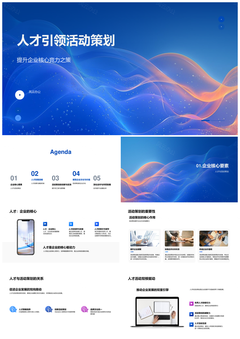 风云办公提供的人才发展活动策划驱动企业核心竞力PPT模板,下载格式为pptx,一共28页,作品中文字及图均可以修改和编辑,图片更改请在作品中右键图片并更换,文字修改请直接点击文字进行修改。