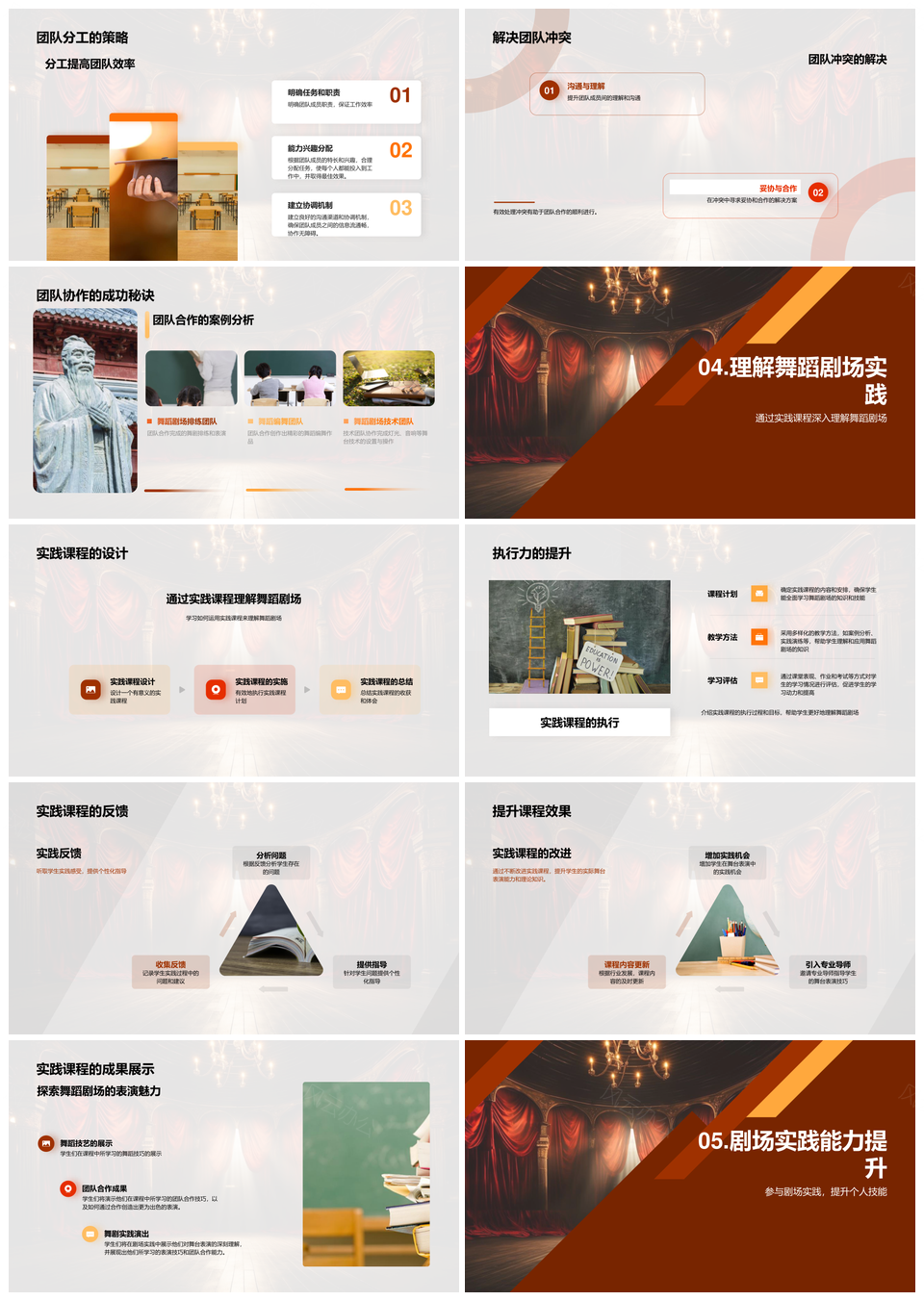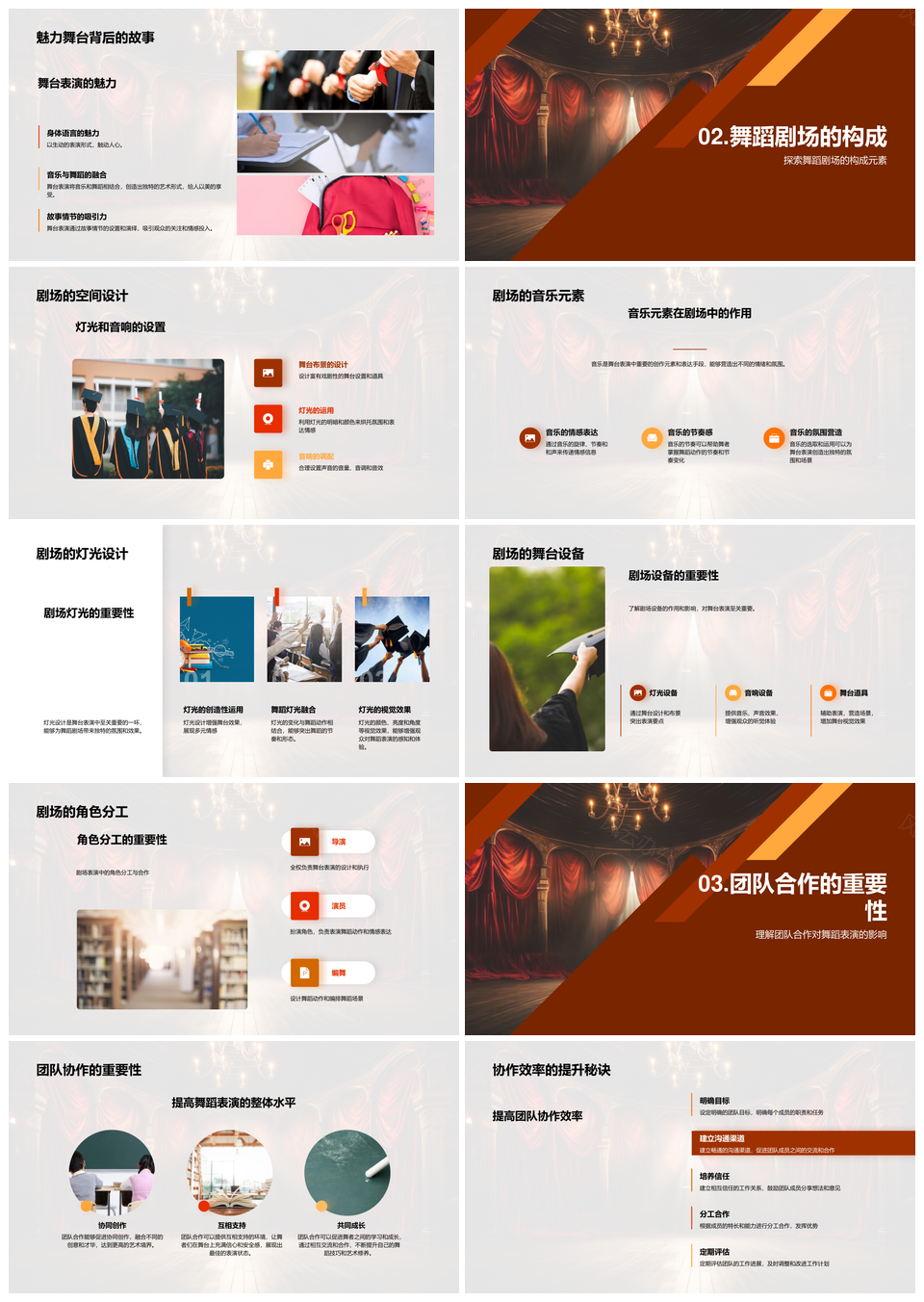 风云办公提供的舞蹈剧场团队合作舞台表演实践指南PPT模板,下载格式为pptx,一共33页,作品中文字及图均可以修改和编辑,图片更改请在作品中右键图片并更换,文字修改请直接点击文字进行修改。