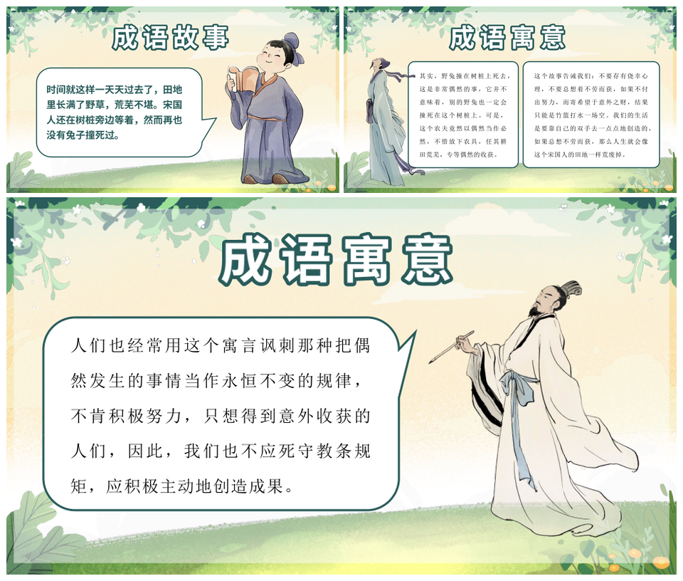 2025小学语文守株待兔成语故事公开课课件中国风PPT模板推荐
