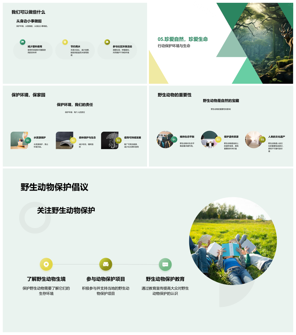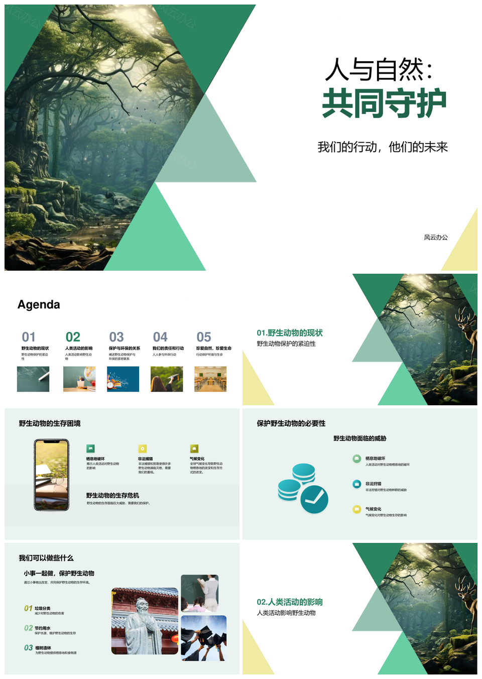 风云办公提供的人与自然共护野生动物保生物多样性PPT模板,下载格式为pptx,一共23页,作品中文字及图均可以修改和编辑,图片更改请在作品中右键图片并更换,文字修改请直接点击文字进行修改。