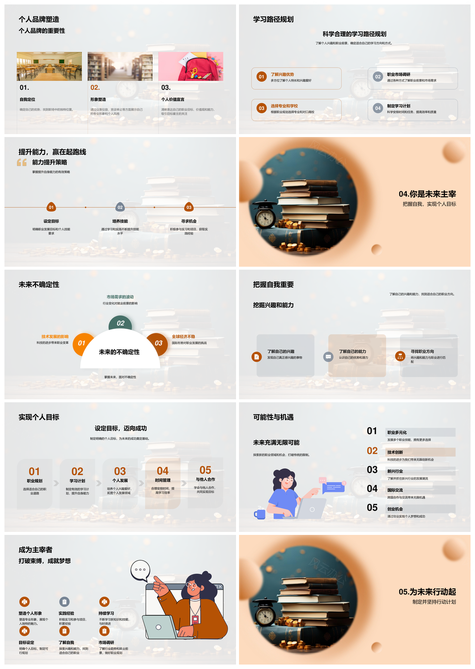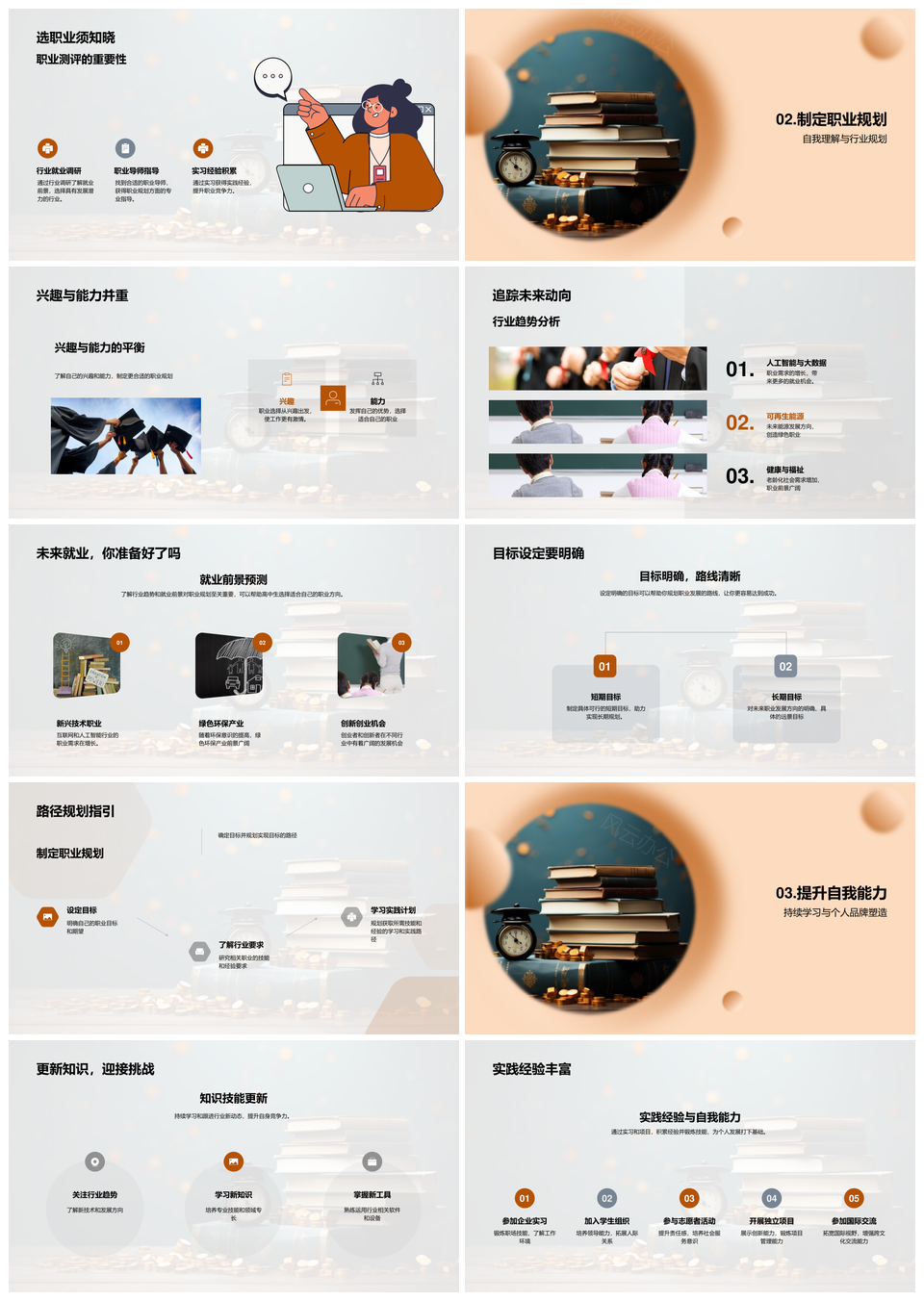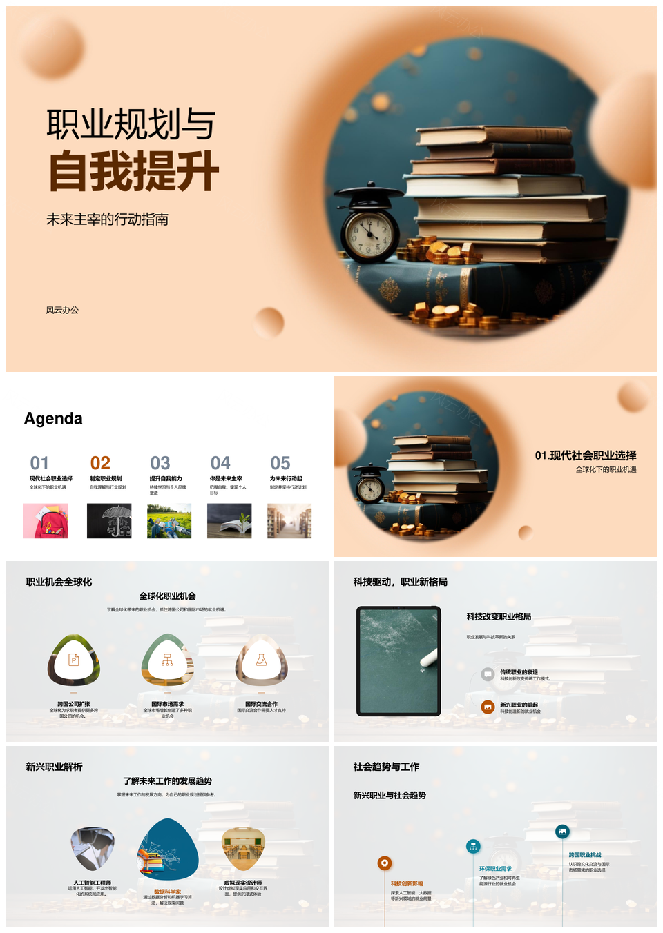 这是一张职业规划自我提升科技全球化新兴职业趋势PPT模板,包含职业规划、自我提升、科技、全球化、新兴职业、趋势等主题内容,也可用作职业规划自我提升科技全球化、科技全球化新兴职业趋势、职业规划自我提升科技、自我提升科技全球化、科技全球化新兴职业、全球化新兴职业趋势、职业规划新兴职业趋势、职业规划自我提升、科技全球化、新兴职业趋势、自我提升科技、全球化新兴职业、职业规划科技、自我提升全球化、科技新兴职业等PPT场景使用。 风云办公提供的职业规划自我提升科技全球化新兴职业趋势PPT模板,下载格式为pptx,一共33页,作品中文字及图均可以修改和编辑,图片更改请在作品中右键图片并更换,文字修改请直接点击文字进行修改。