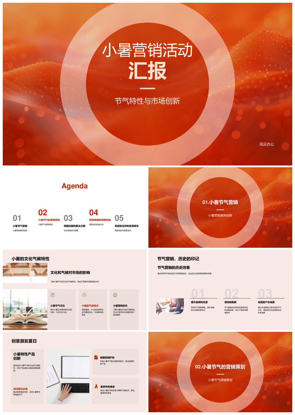 风云办公提供的小暑节气营销活动创新规划实施汇报PPT模板,下载格式为pptx,一共23页,作品中文字及图均可以修改和编辑,图片更改请在作品中右键图片并更换,文字修改请直接点击文字进行修改。