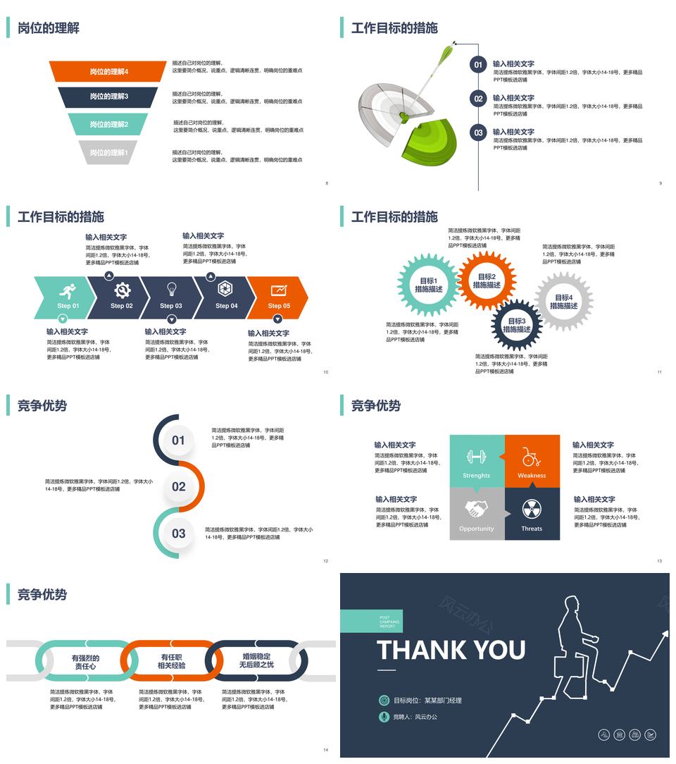 这是一张绿色稳重简约岗位竞聘PPT模板,包含绿色、稳重、简约、岗位、竞聘等主题内容,也可用作绿色稳重简约岗位、稳重简约岗位竞聘、绿色稳重简约、稳重简约岗位、简约岗位竞聘、绿色稳重、稳重简约、简约岗位、岗位竞聘等PPT场景使用。 风云办公提供的绿色稳重简约岗位竞聘PPT模板,下载格式为pptx,一共13页,作品中文字及图均可以修改和编辑,图片更改请在作品中右键图片并更换,文字修改请直接点击文字进行修改。
