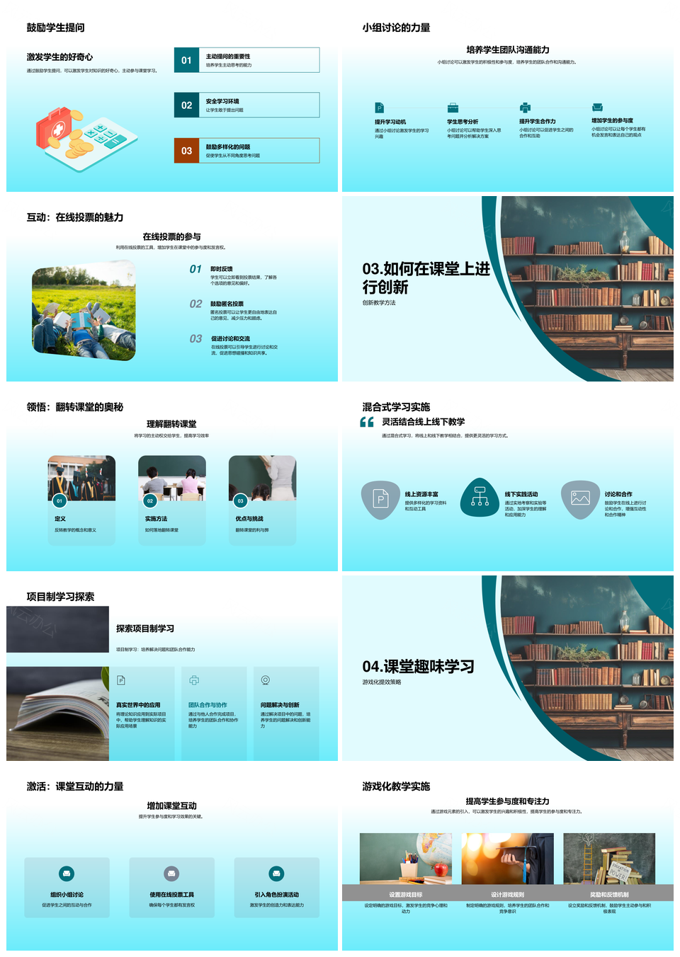 风云办公提供的翻转课堂混合学习提升效率趣味互动PPT模板,下载格式为pptx,一共23页,作品中文字及图均可以修改和编辑,图片更改请在作品中右键图片并更换,文字修改请直接点击文字进行修改。