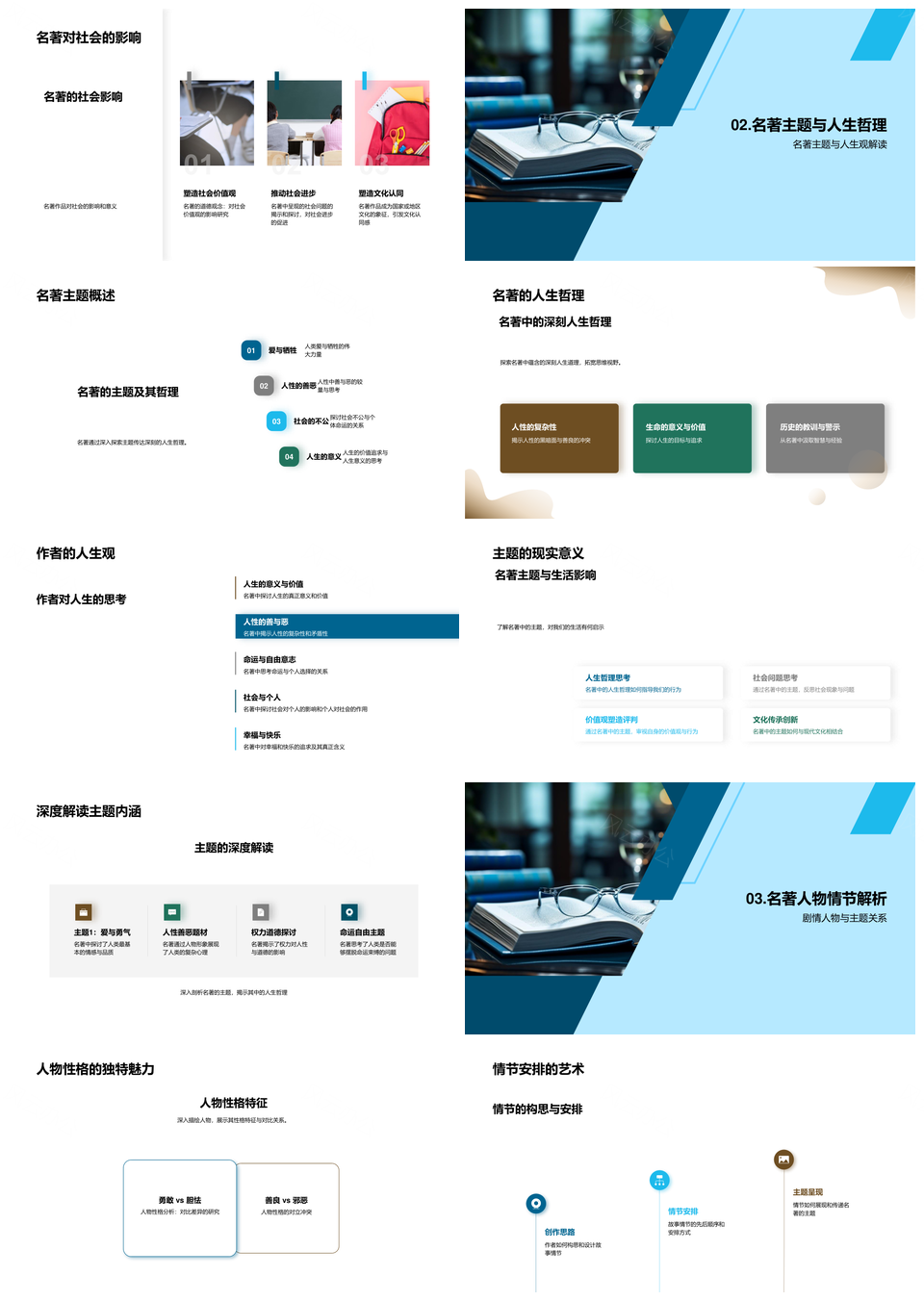 风云办公提供的经典名著背景主题人物解析提升PPT模板,下载格式为pptx,一共33页,作品中文字及图均可以修改和编辑,图片更改请在作品中右键图片并更换,文字修改请直接点击文字进行修改。