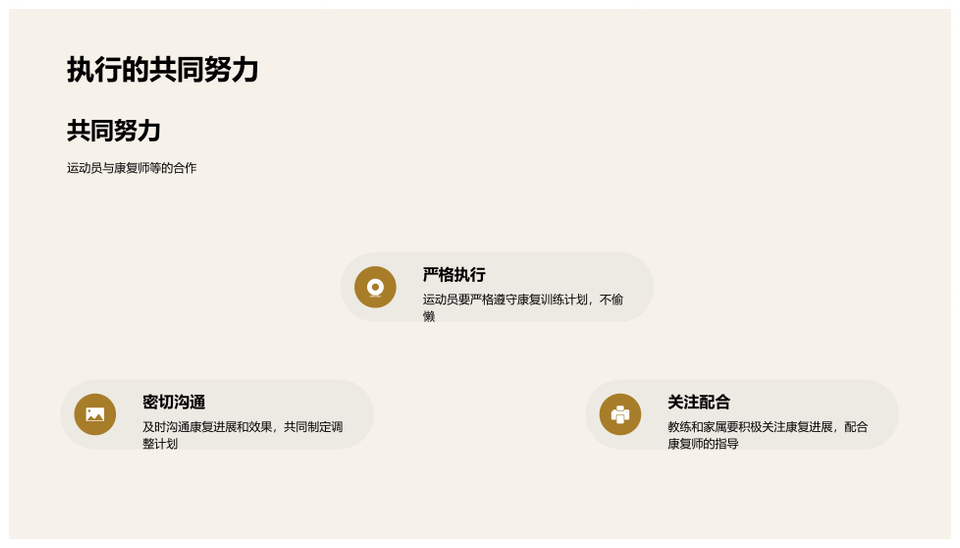 这是一张运动员运动损伤康复训练计划与治疗方法PPT模板,包含运动员、运动损伤、康复、训练计划、治疗、方法等主题内容,也可用作运动员运动损伤康复、运动损伤康复训练、损伤康复训练计划、康复训练计划治疗、训练计划治疗方法、运动员运动损伤、运动损伤康复、损伤康复训练、康复训练计划、训练计划治疗、计划治疗方法、运动员运动、运动损伤、损伤康复、康复训练等PPT场景使用。 风云办公提供的运动员运动损伤康复训练计划与治疗方法PPT模板,下载格式为pptx,一共29页,作品中文字及图均可以修改和编辑,图片更改请在作品中右键图片并更换,文字修改请直接点击文字进行修改。