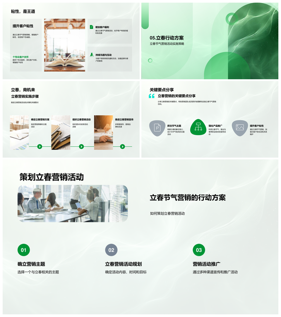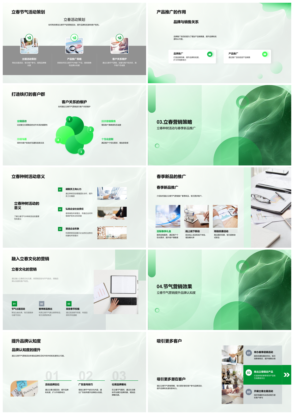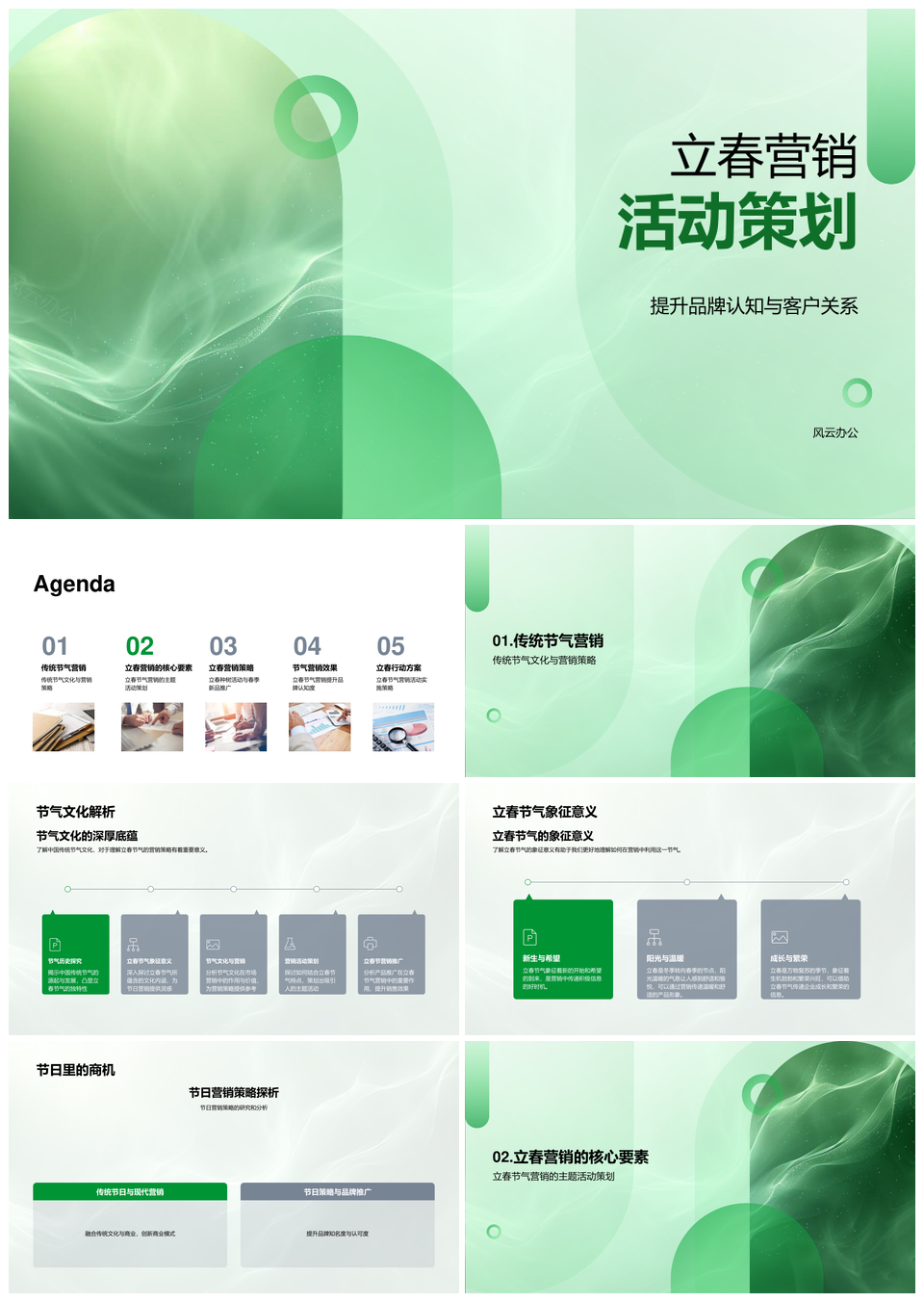 风云办公提供的立春品牌客户关系产品营销活动策划PPT模板,下载格式为pptx,一共23页,作品中文字及图均可以修改和编辑,图片更改请在作品中右键图片并更换,文字修改请直接点击文字进行修改。