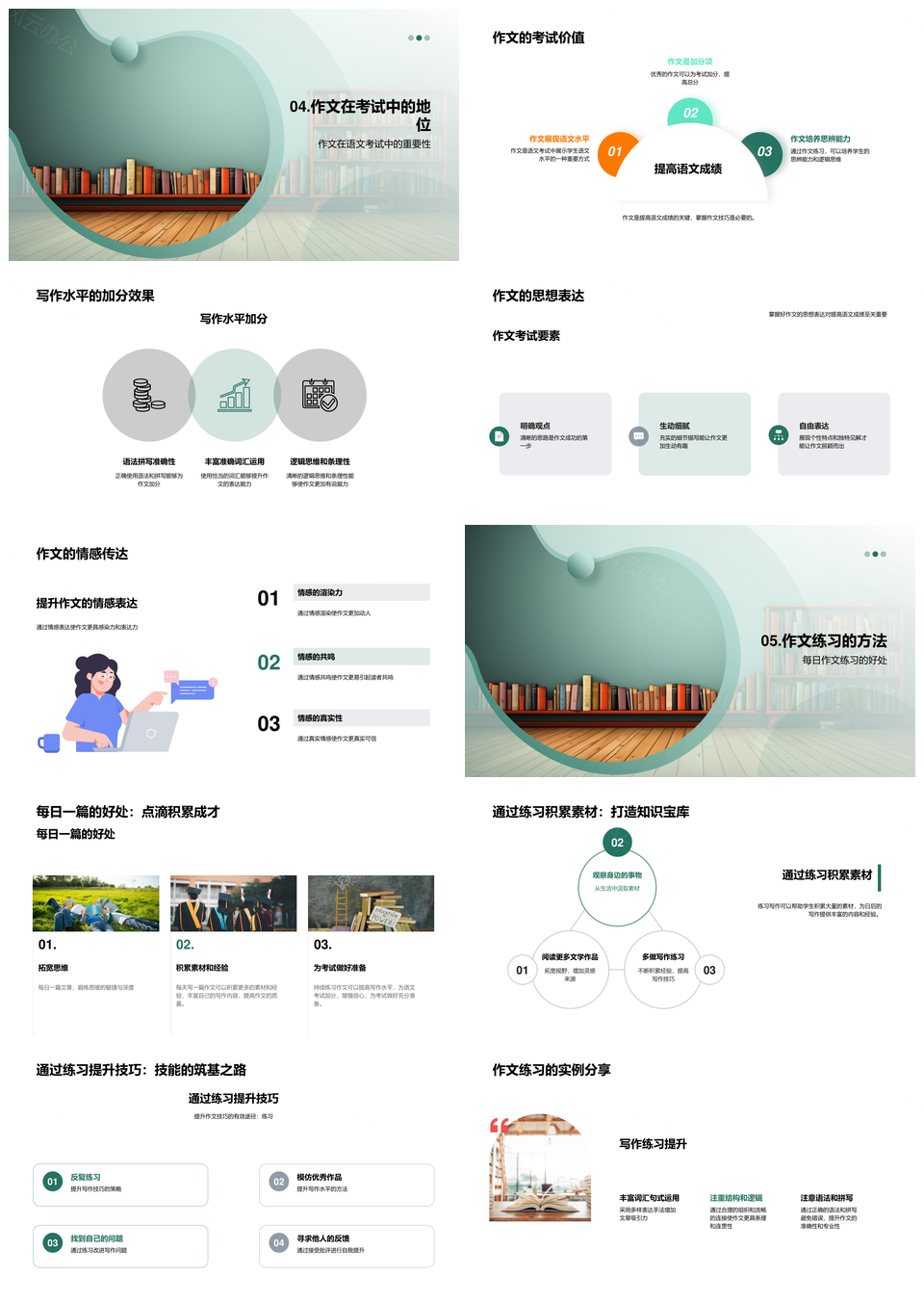提升作文实战构思语言高效练习每日积累PPT模板推荐