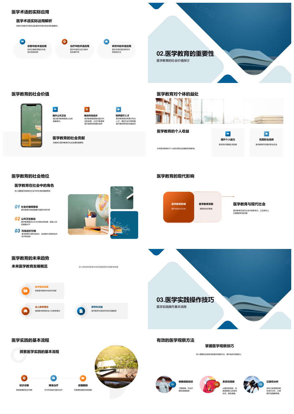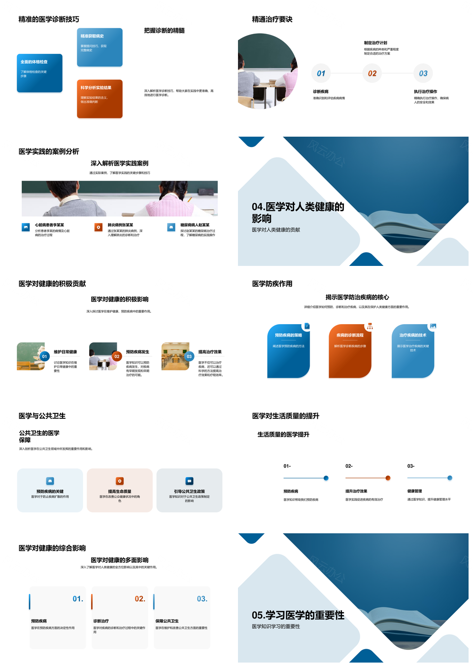 风云办公提供的医学教育实践与公共卫生预防知识PPT模板,下载格式为pptx,一共33页,作品中文字及图均可以修改和编辑,图片更改请在作品中右键图片并更换,文字修改请直接点击文字进行修改。