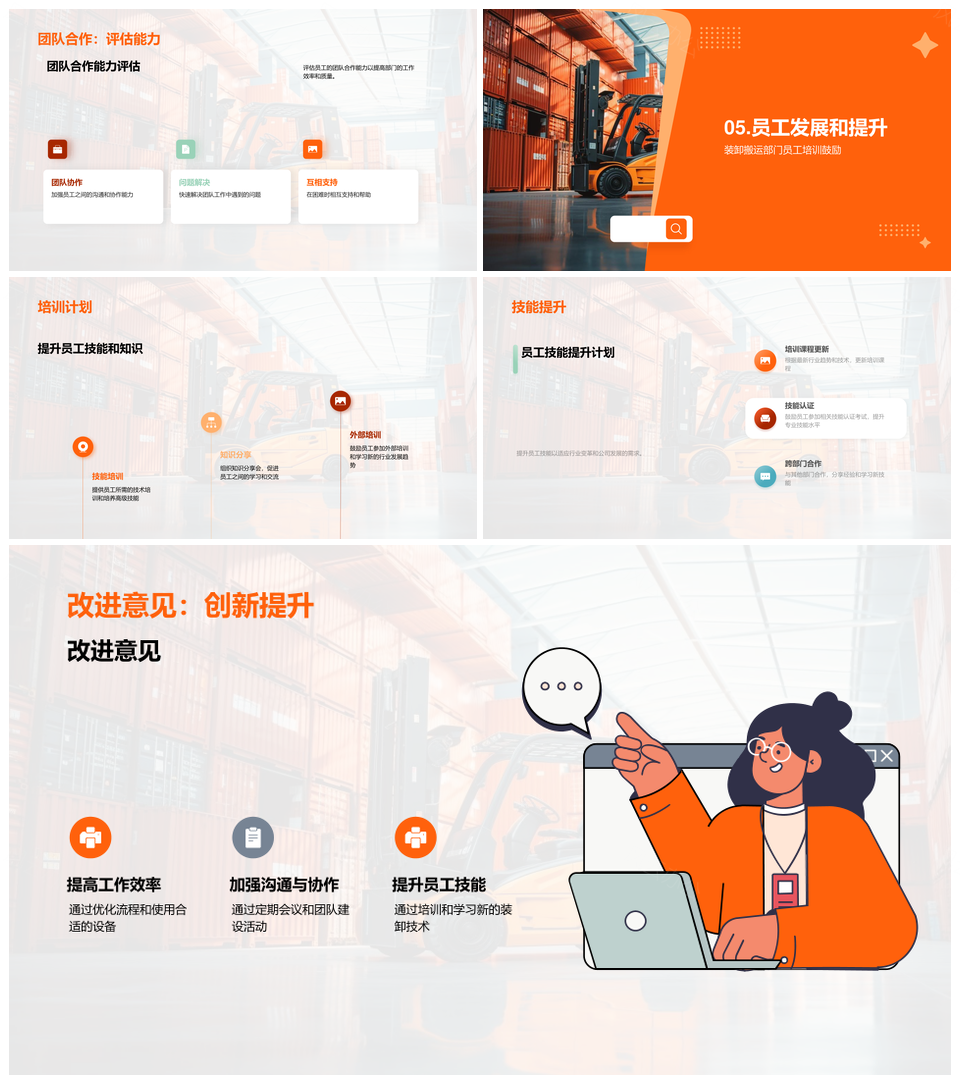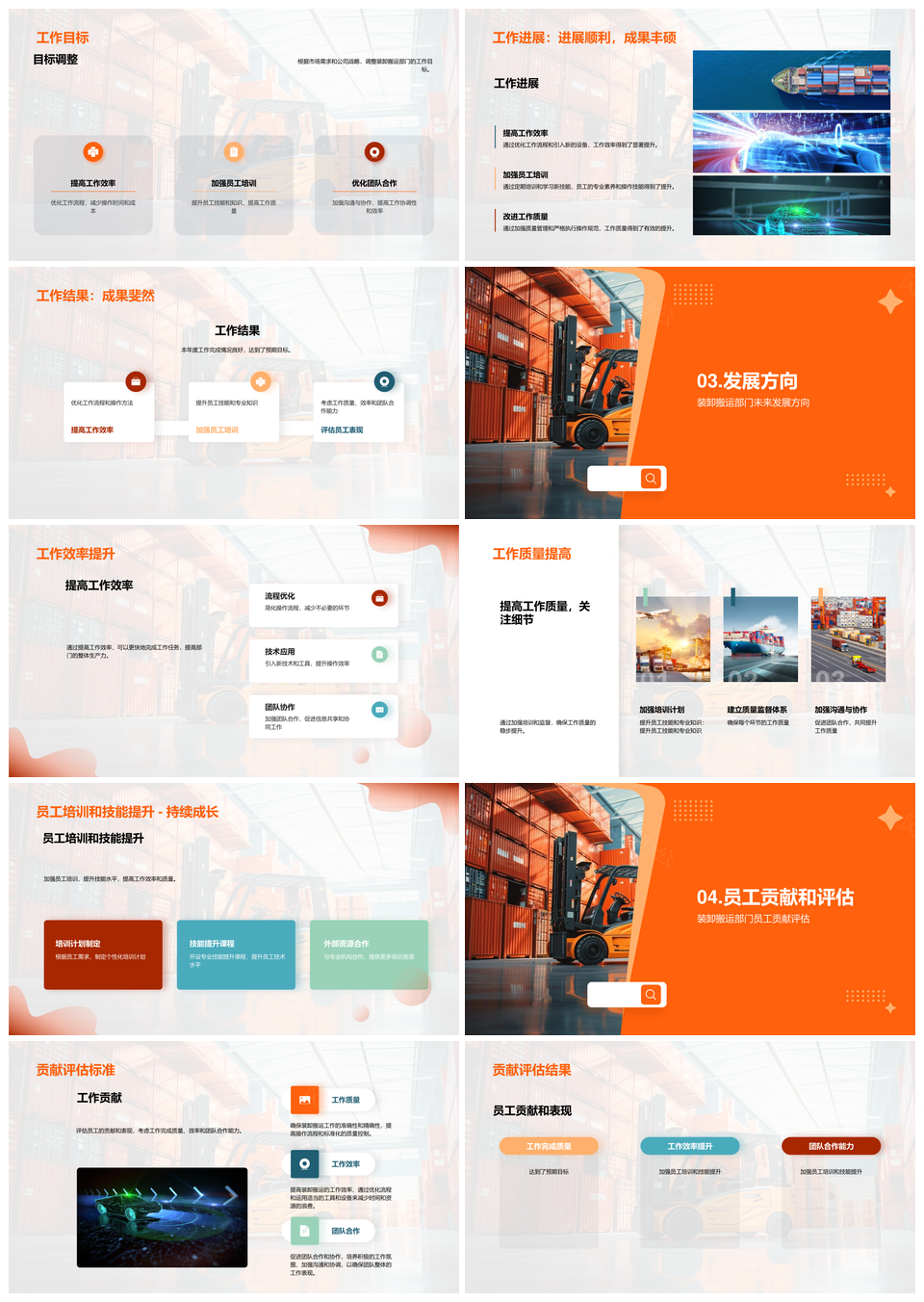 装卸搬运部门年度总结目标发展方向员工叉车表现PPT模板推荐