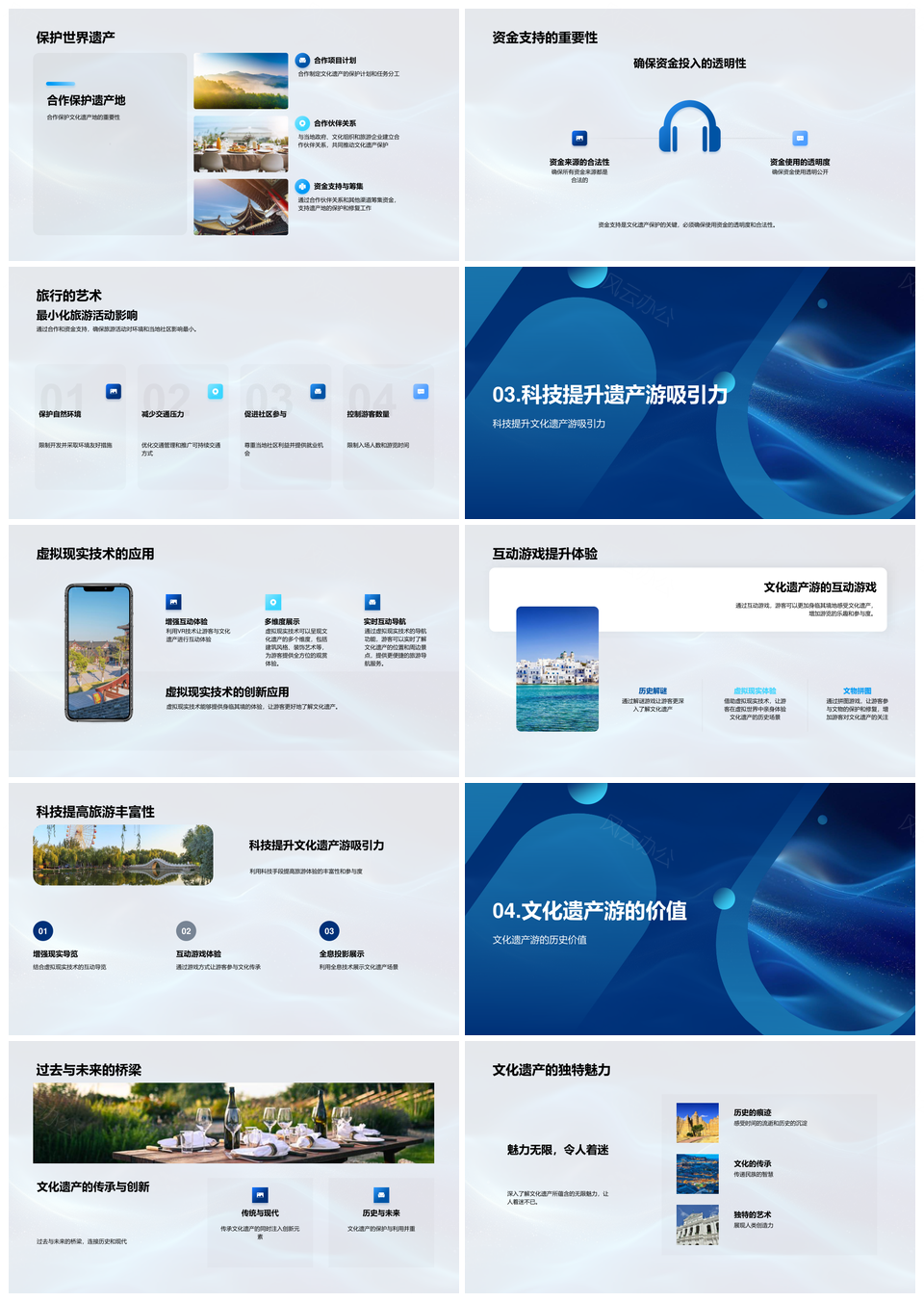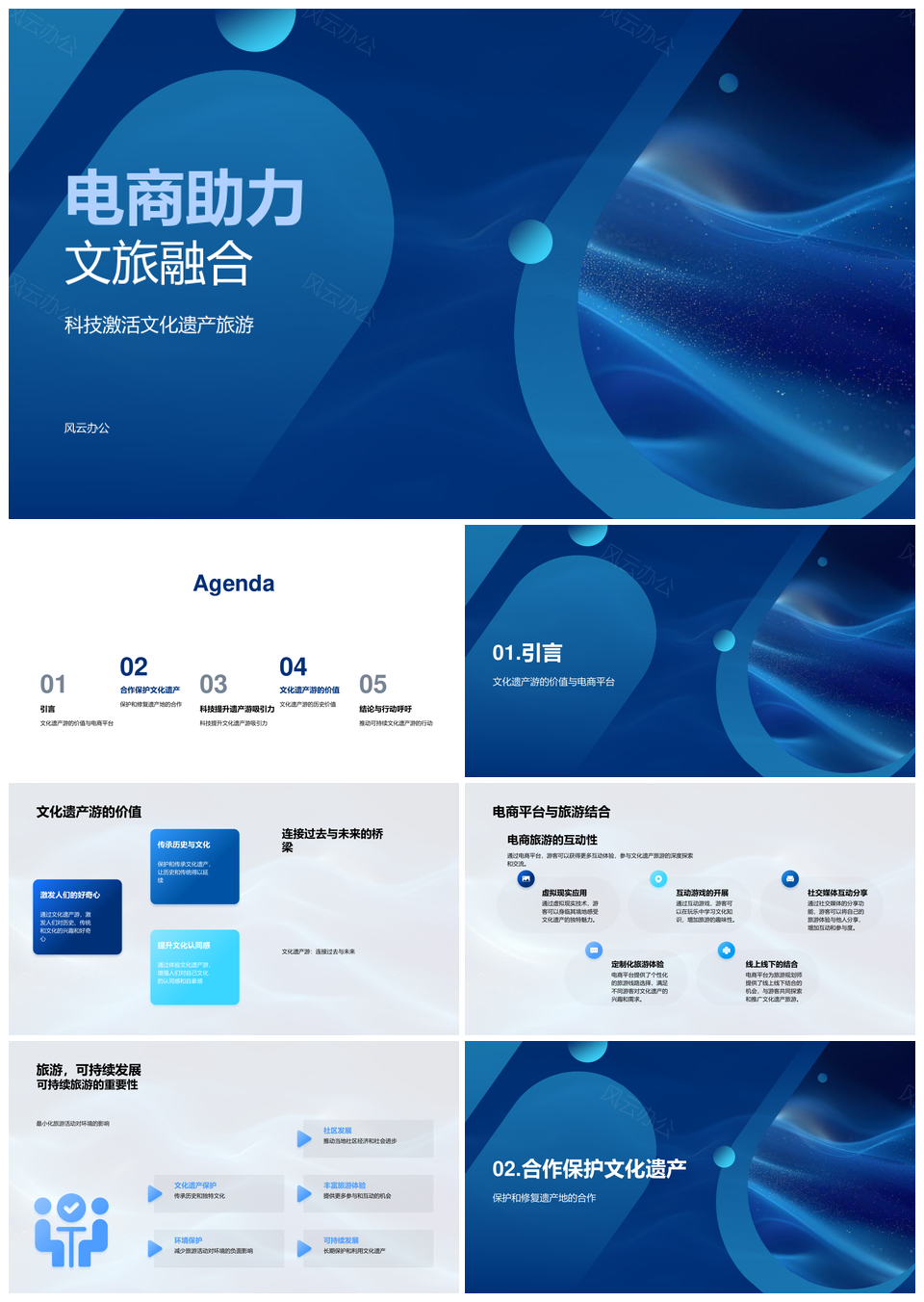 这是一张电商助力文旅融合VR互动护遗可持续游PPT模板,包含电商、助力、文旅、融合、VR、互动、护遗、可持续游等主题内容,也可用作电商助力文旅融合、文旅融合VR互动、VR互动护遗可持续游、电商助力文旅、助力文旅融合、文旅融合VR、融合VR互动、VR互动护遗、互动护遗可持续游、电商助力、助力文旅、文旅融合、融合VR、VR互动、护遗可持续游等PPT场景使用。 风云办公提供的电商助力文旅融合VR互动护遗可持续游PPT模板,下载格式为pptx,一共23页,作品中文字及图均可以修改和编辑,图片更改请在作品中右键图片并更换,文字修改请直接点击文字进行修改。