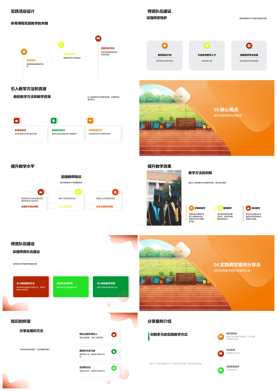 风云办公提供的大学体育教师实践教学技能提升策略PPT模板,下载格式为pptx,一共19页,作品中文字及图均可以修改和编辑,图片更改请在作品中右键图片并更换,文字修改请直接点击文字进行修改。
