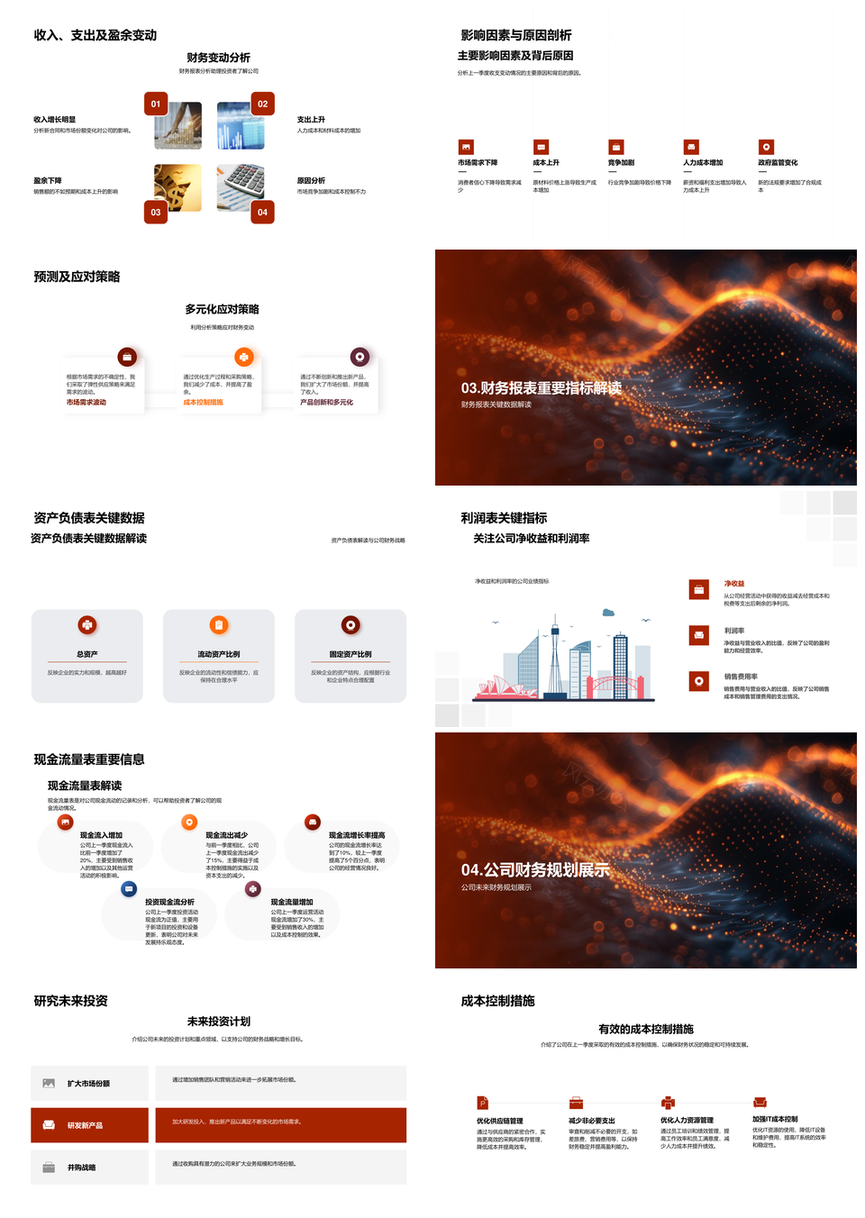 季度财务报告规划收支利润资产负债现金流目标成本预算分析PPT模板