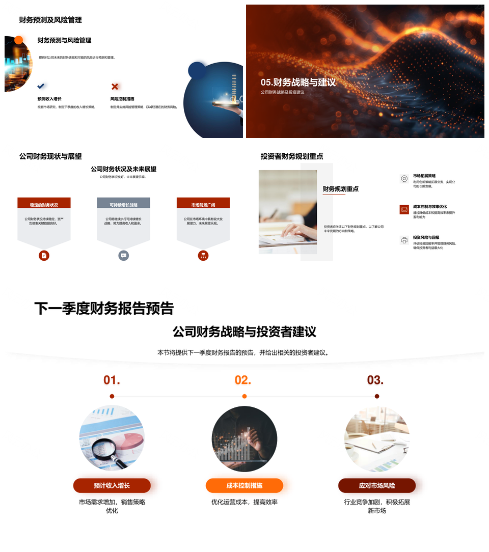 这是一张季度财务分析战略数据三表收支盈余报告PPT模板,包含季度、财务分析、战略数据、三表、收支、盈余、报告等主题内容,也可用作季度财务分析战略数据三表收支、财务分析战略数据三表收支盈余、战略数据三表收支盈余报告、季度财务分析战略数据三表、季度财务分析战略数据、财务分析战略数据三表、战略数据三表收支、数据三表收支盈余、三表收支盈余报告、季度财务分析战略、财务分析战略数据、战略数据三表、数据三表收支、三表收支盈余、季度财务分析等PPT场景使用。 风云办公提供的季度财务分析战略数据三表收支盈余报告PPT模板,下载格式为pptx,一共23页,作品中文字及图均可以修改和编辑,图片更改请在作品中右键图片并更换,文字修改请直接点击文字进行修改。