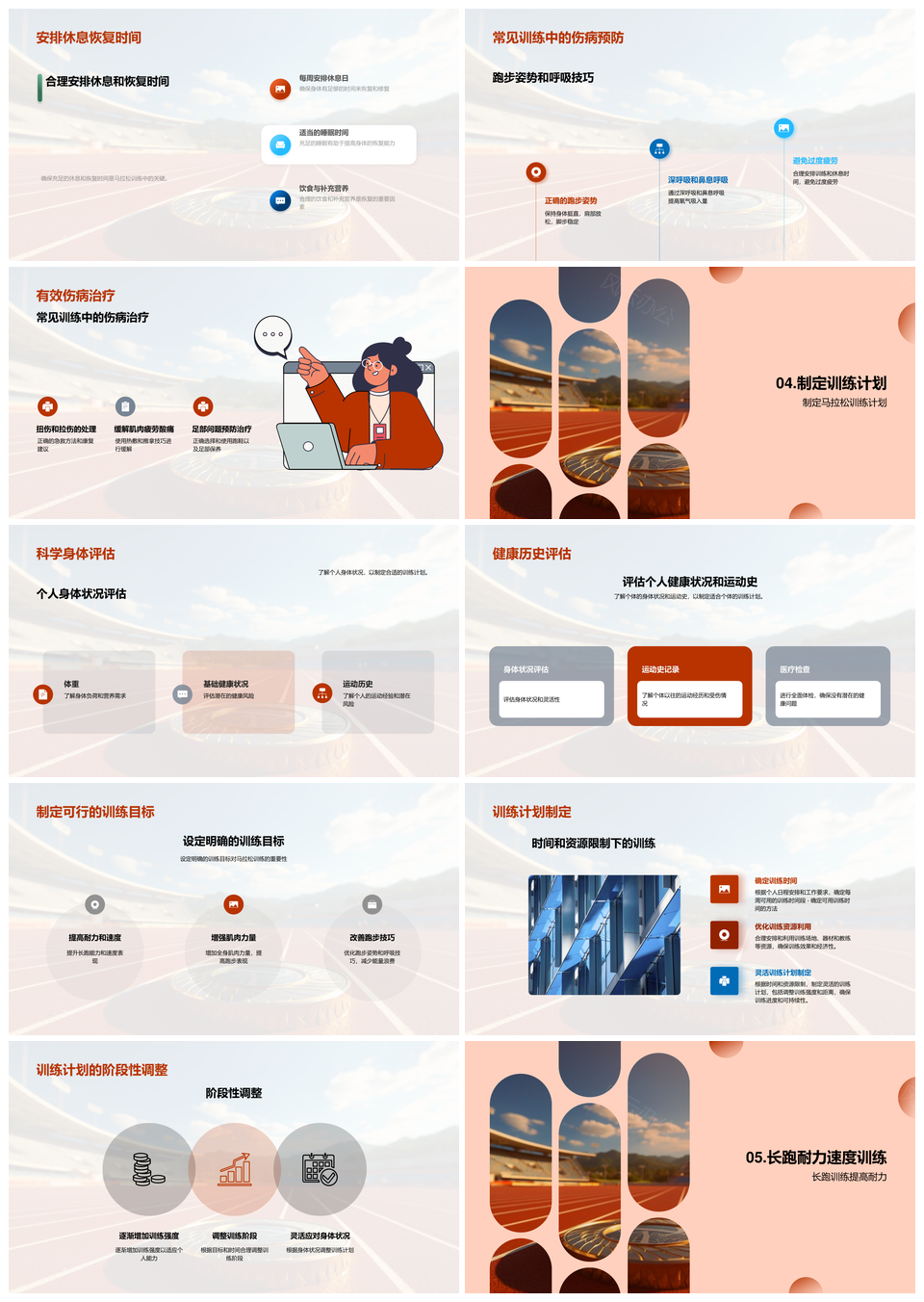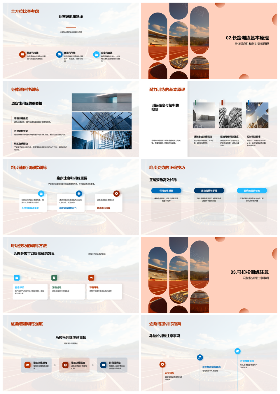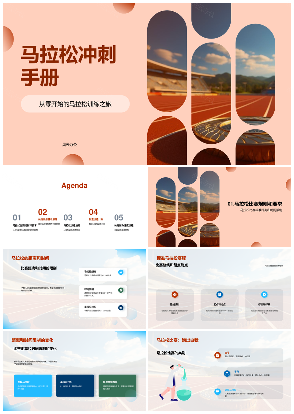 这是一张马拉松学员训练比赛规则距离时间裁判指南PPT模板,包含马拉松、学员、训练、比赛、规则、距离、时间、裁判、指南等主题内容,也可用作马拉松学员训练比赛、学员训练比赛规则、训练比赛规则距离、比赛规则距离时间、规则距离时间裁判、距离时间裁判指南、马拉松学员训练、学员训练比赛、训练比赛规则、比赛规则距离、规则距离时间、距离时间裁判、时间裁判指南、马拉松学员、训练比赛等PPT场景使用。 风云办公提供的马拉松学员训练比赛规则距离时间裁判指南PPT模板,下载格式为pptx,一共33页,作品中文字及图均可以修改和编辑,图片更改请在作品中右键图片并更换,文字修改请直接点击文字进行修改。