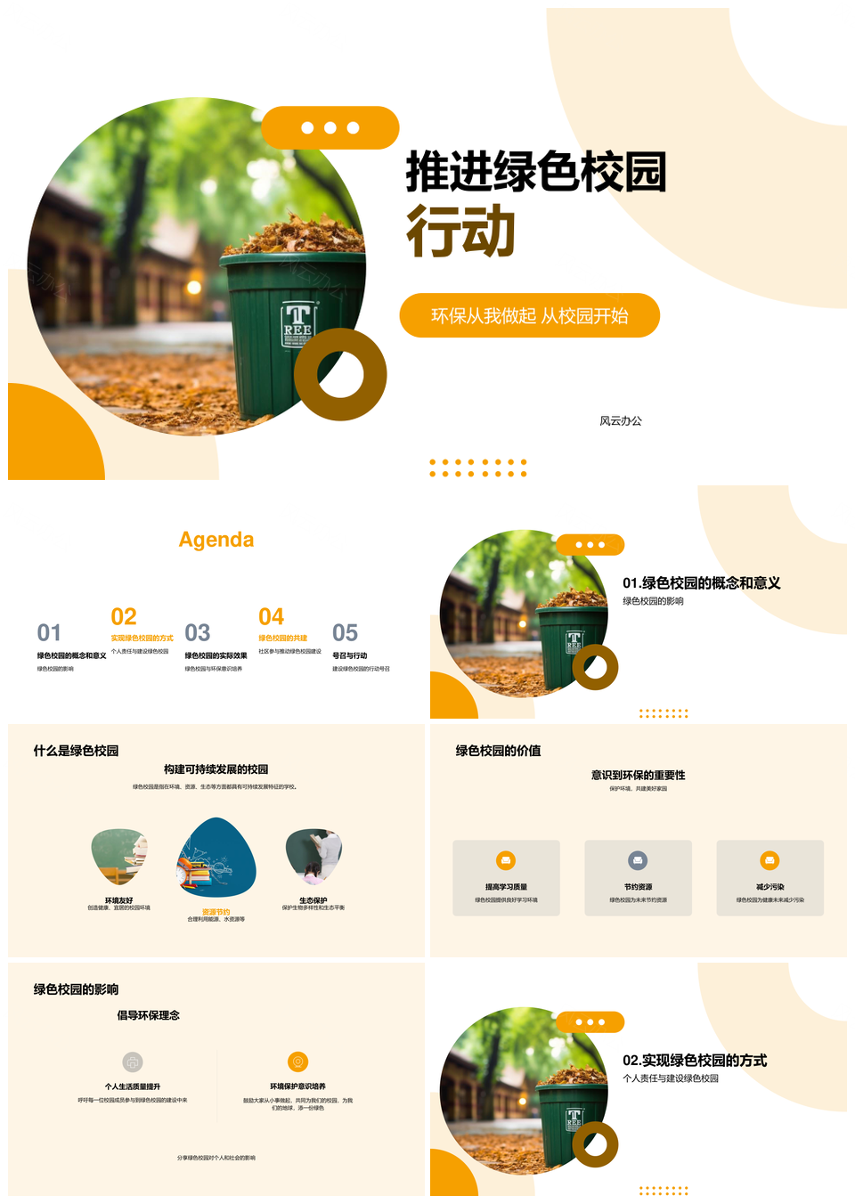 风云办公提供的绿色校园环保教育促可持续发展PPT模板,下载格式为pptx,一共23页,作品中文字及图均可以修改和编辑,图片更改请在作品中右键图片并更换,文字修改请直接点击文字进行修改。
