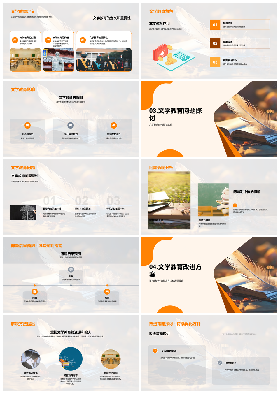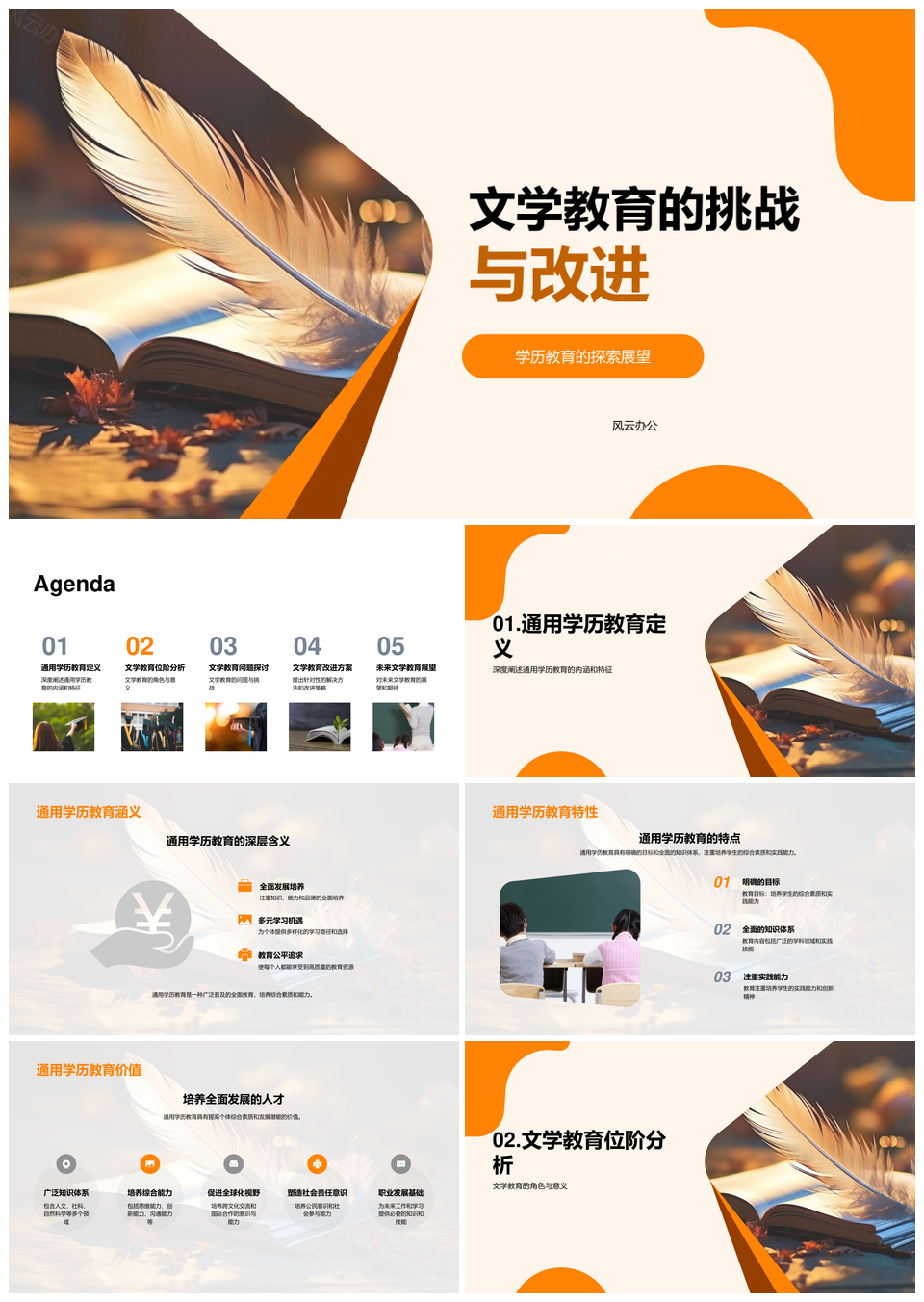 风云办公提供的文学教育挑战与通用学历改进策略PPT模板,下载格式为pptx,一共23页,作品中文字及图均可以修改和编辑,图片更改请在作品中右键图片并更换,文字修改请直接点击文字进行修改。