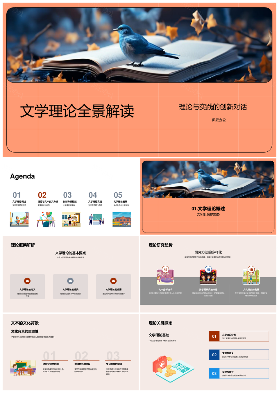 风云办公提供的文学理论实践研究趋势框架文化解析PPT模板,下载格式为pptx,一共28页,作品中文字及图均可以修改和编辑,图片更改请在作品中右键图片并更换,文字修改请直接点击文字进行修改。
