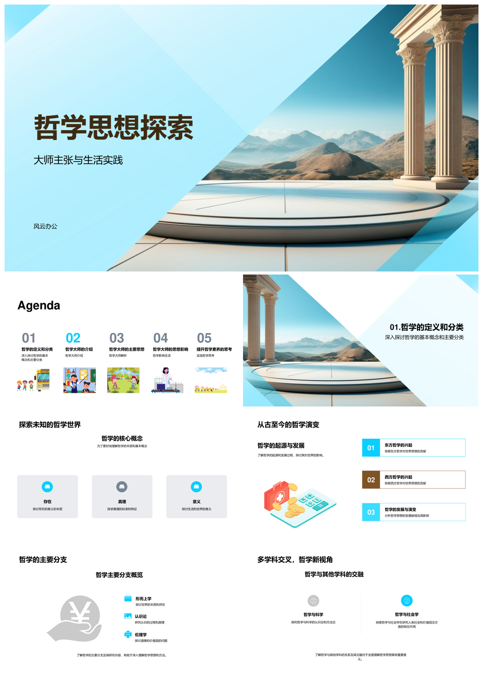 风云办公提供的哲学源流分支大师理论影响析生活PPT模板,下载格式为pptx,一共33页,作品中文字及图均可以修改和编辑,图片更改请在作品中右键图片并更换,文字修改请直接点击文字进行修改。