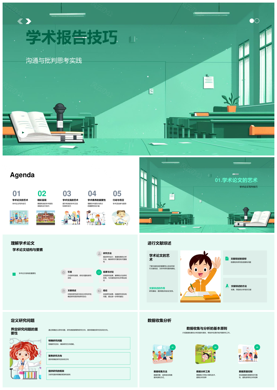 学术报告批判思维文献综述研究问题数据分析PPT模板推荐