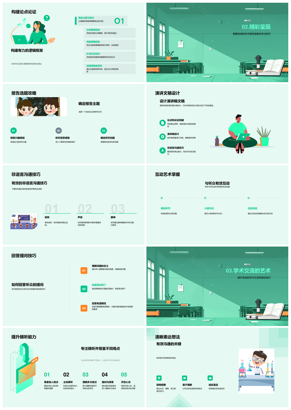学术报告绿色小清新毕业论文答辩PPT模板