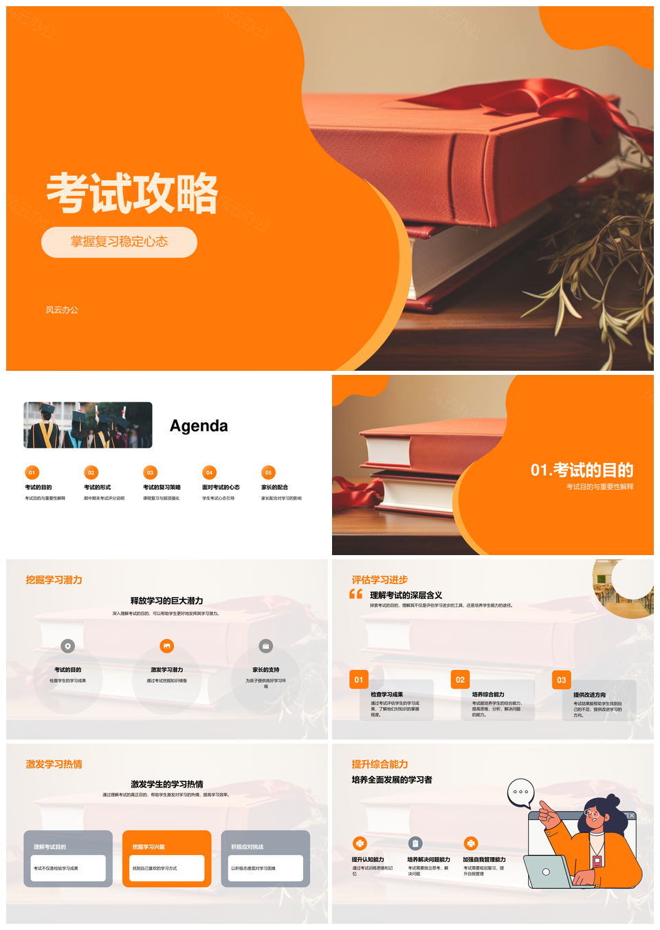 风云办公提供的考试攻略稳心态补弱项提能力期中期末PPT模板,下载格式为pptx,一共31页,作品中文字及图均可以修改和编辑,图片更改请在作品中右键图片并更换,文字修改请直接点击文字进行修改。